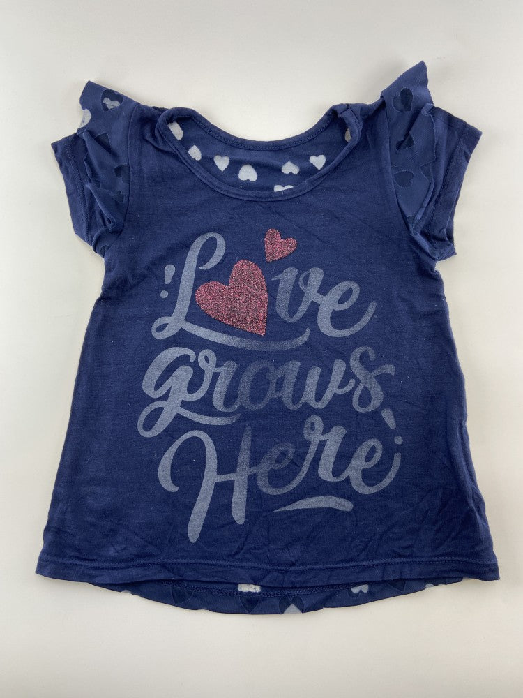 T-shirt com folho nas mangas. Tecido das costas com transparências em forma de coração.