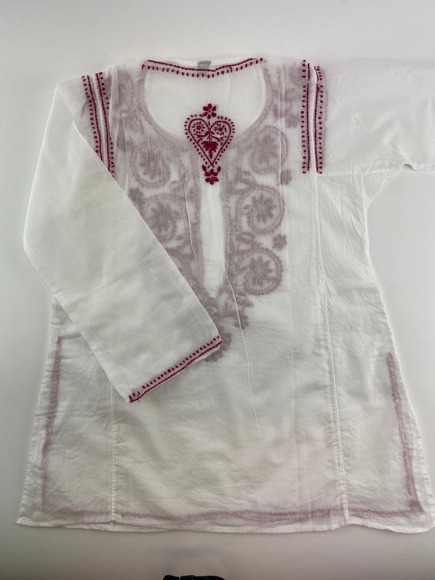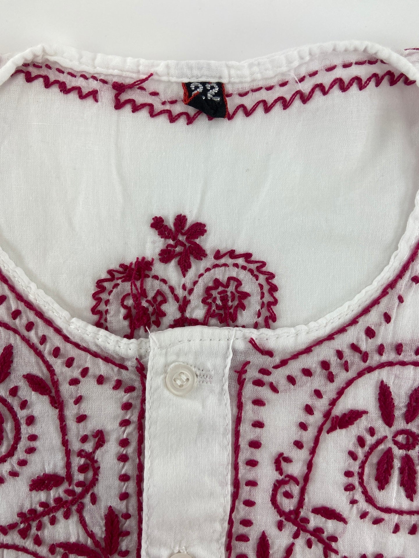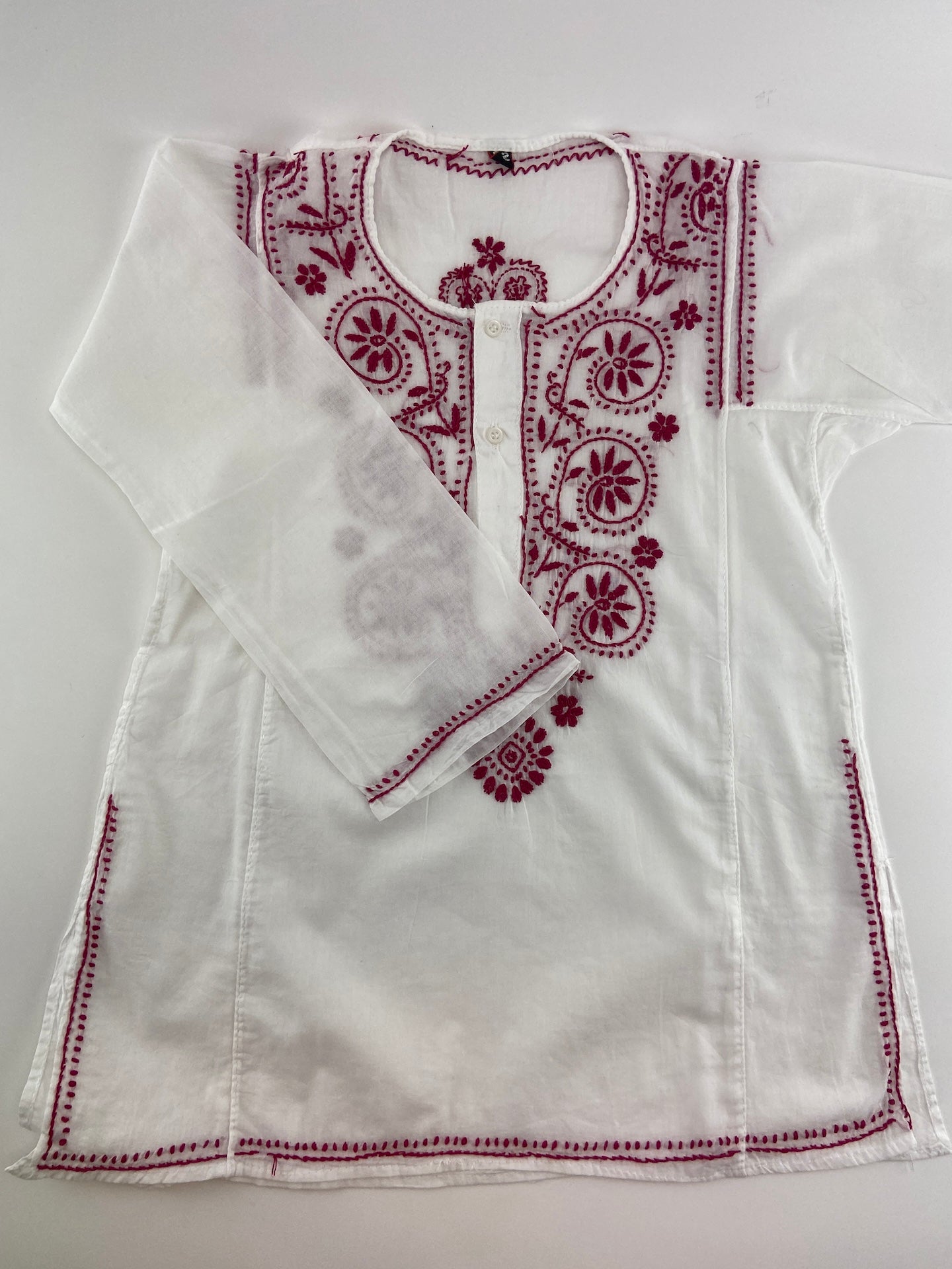 Túnica com leve com botões. Com bordado à frente e atrás.