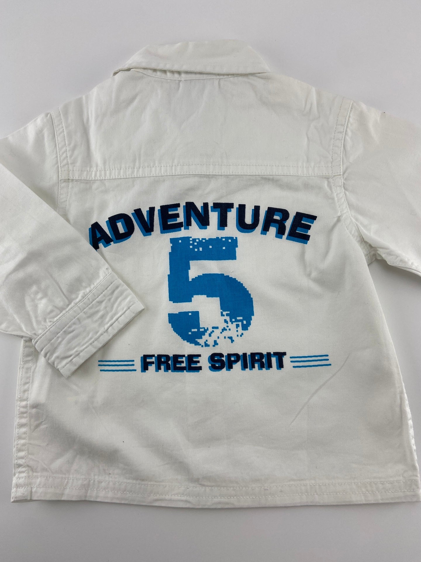 Camisa com bolsos à frente e estampado atrás.
