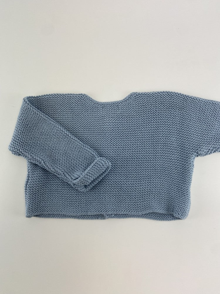 Casaco de malha fresco com botões de madeira.