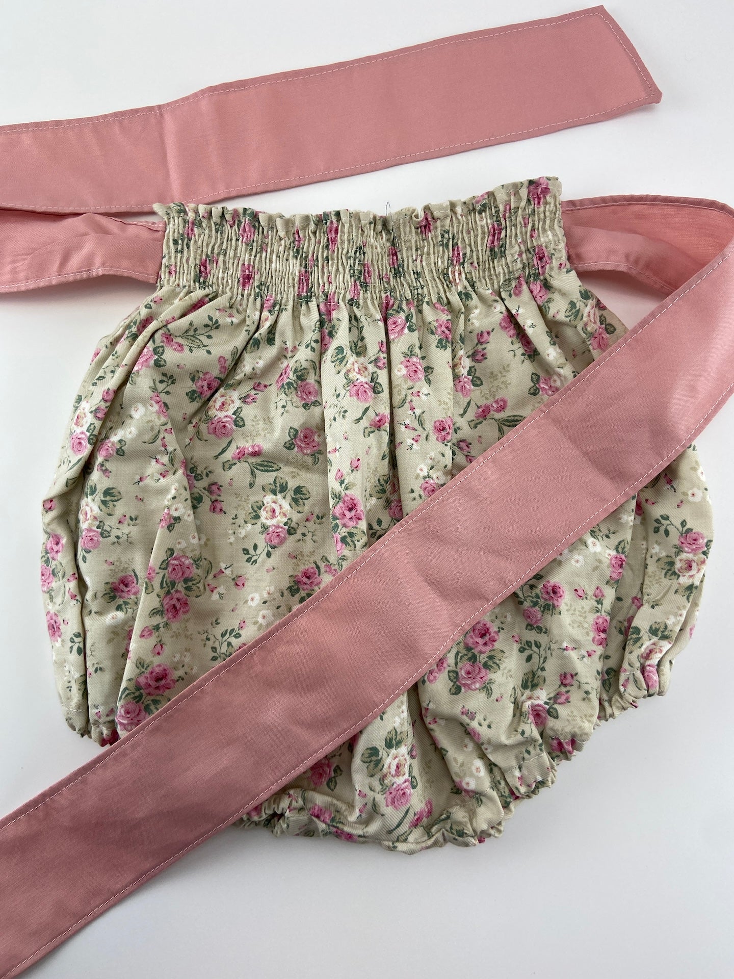 Tapa fraldas com cintura de elástico com fita para fazer laço na cintura.