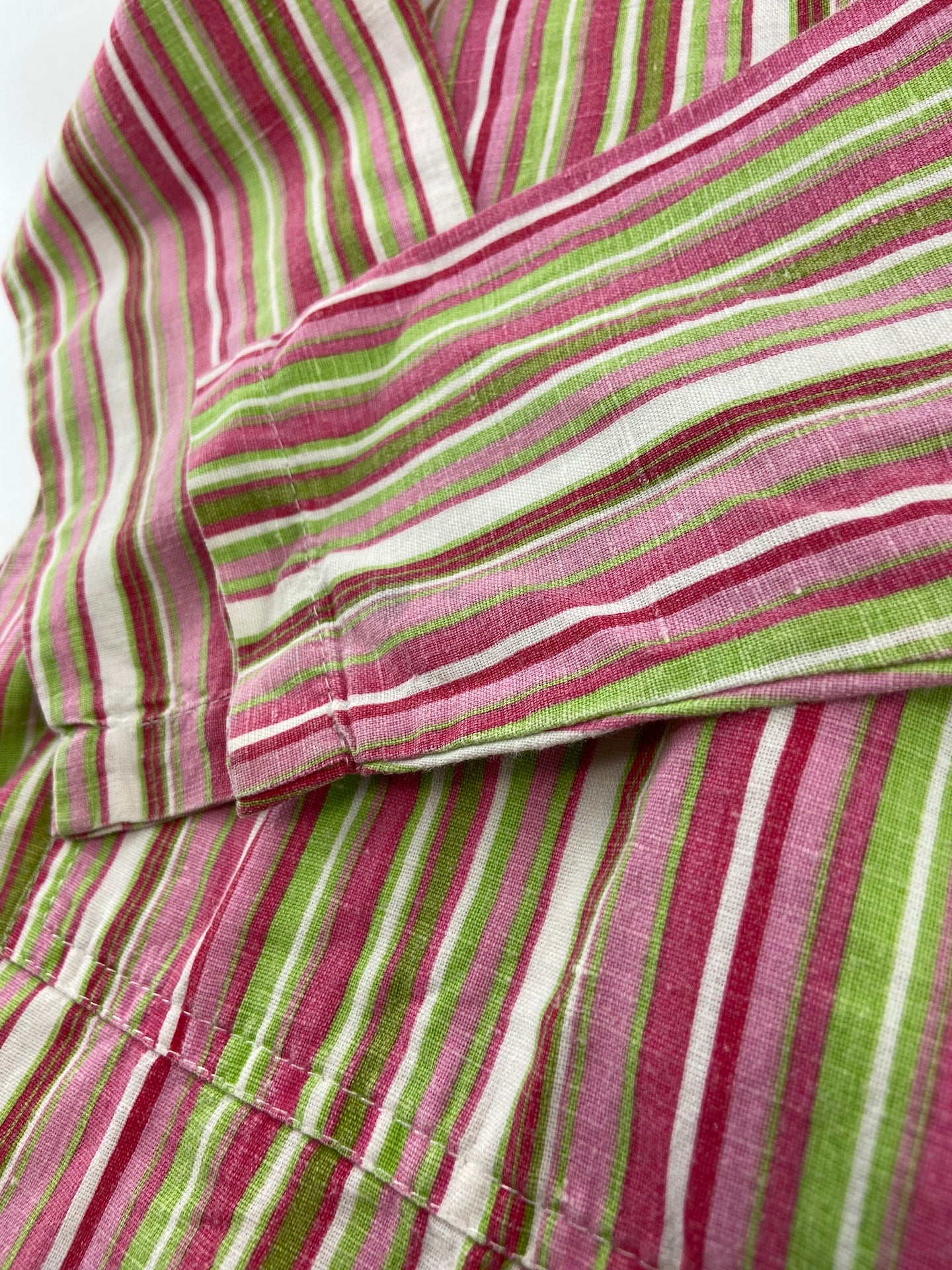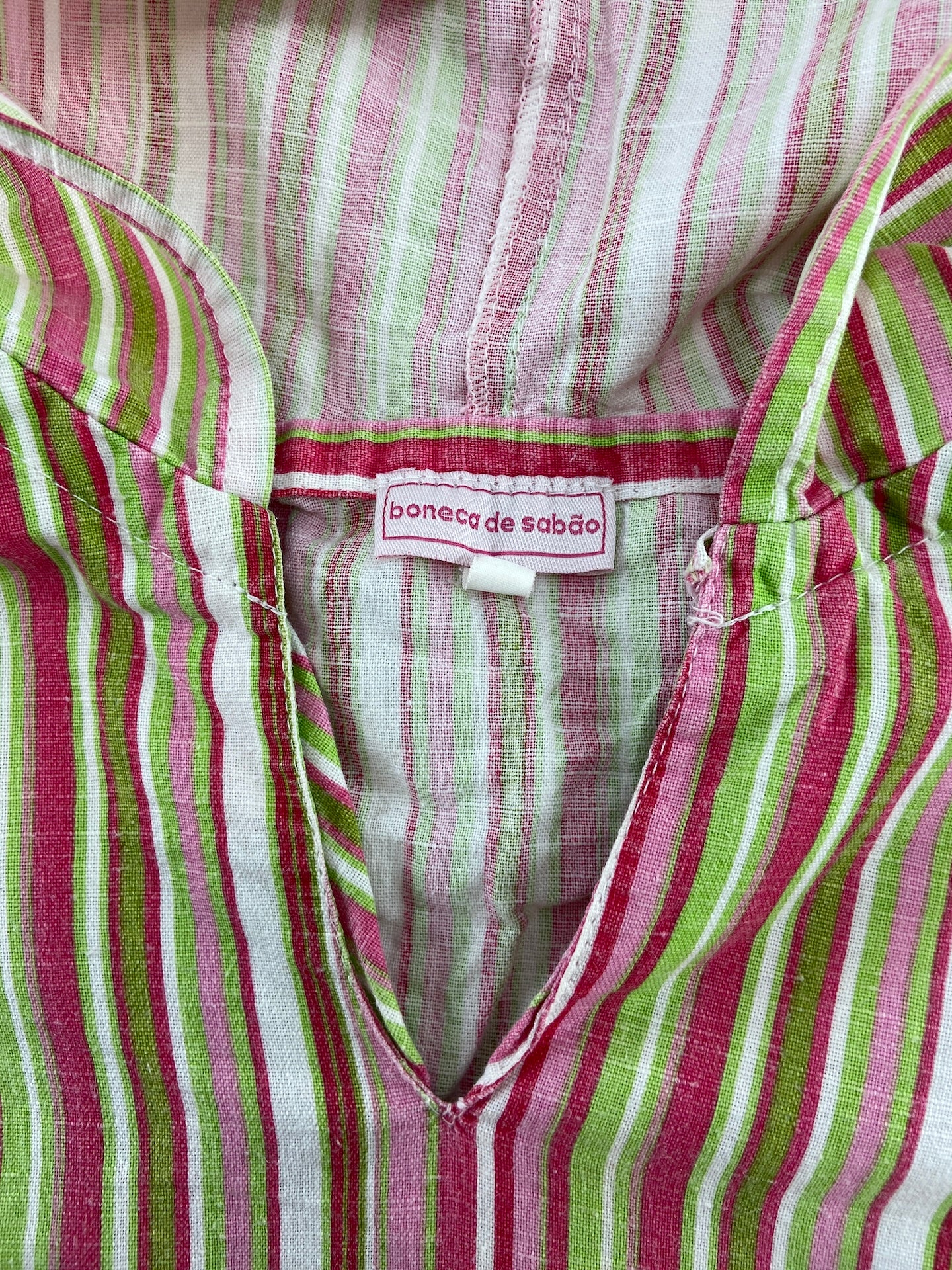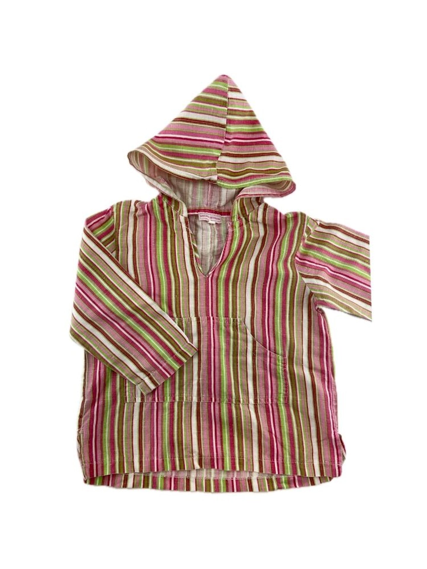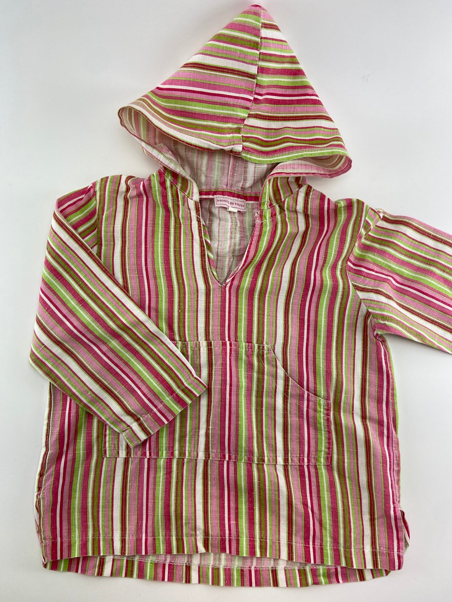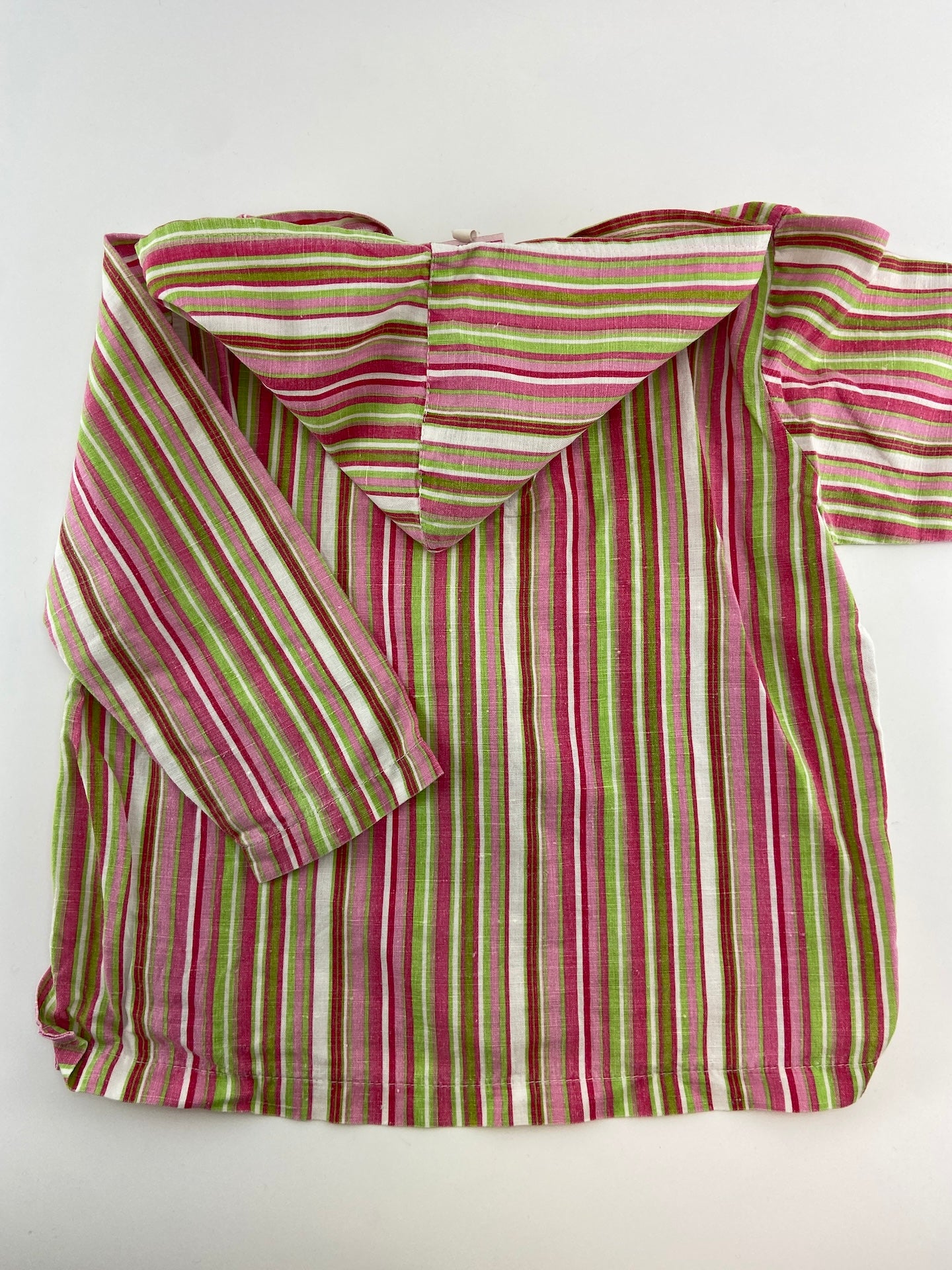 Túnica de capuz de linho com padrão de riscas e bolso duplo na frente.
