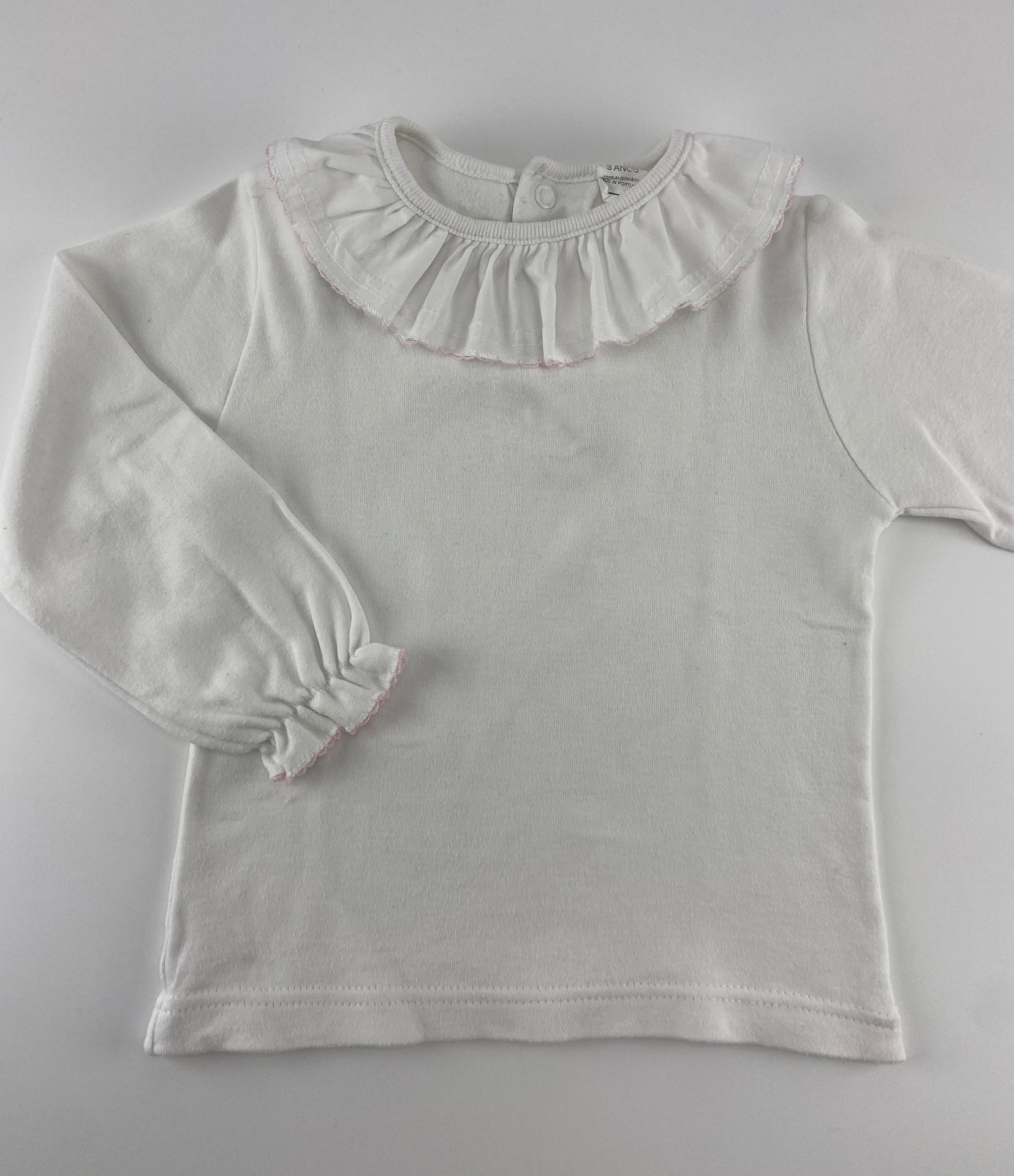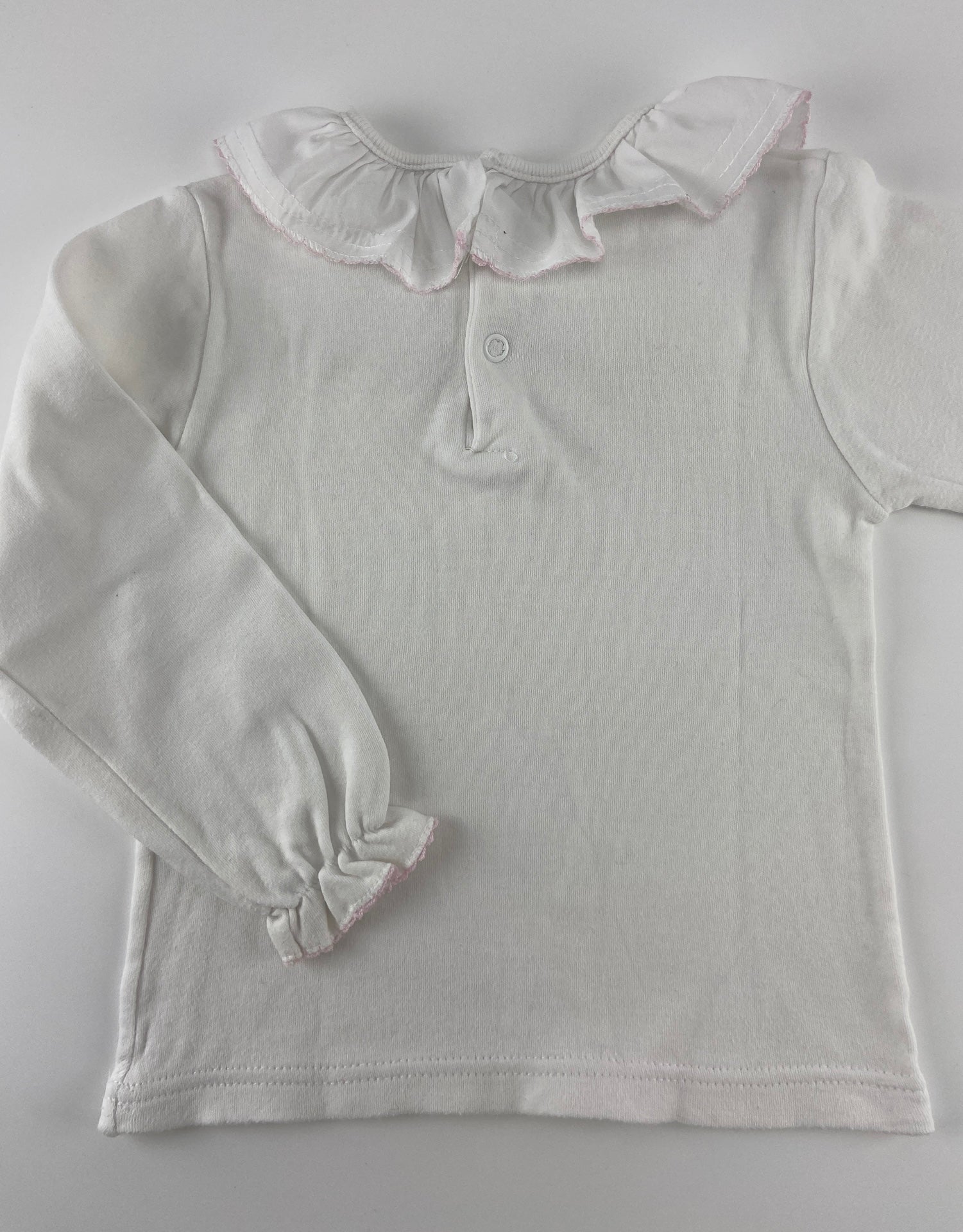 Camisola de golinha com franzido nas mangas em algodão. Com molas nas costas.