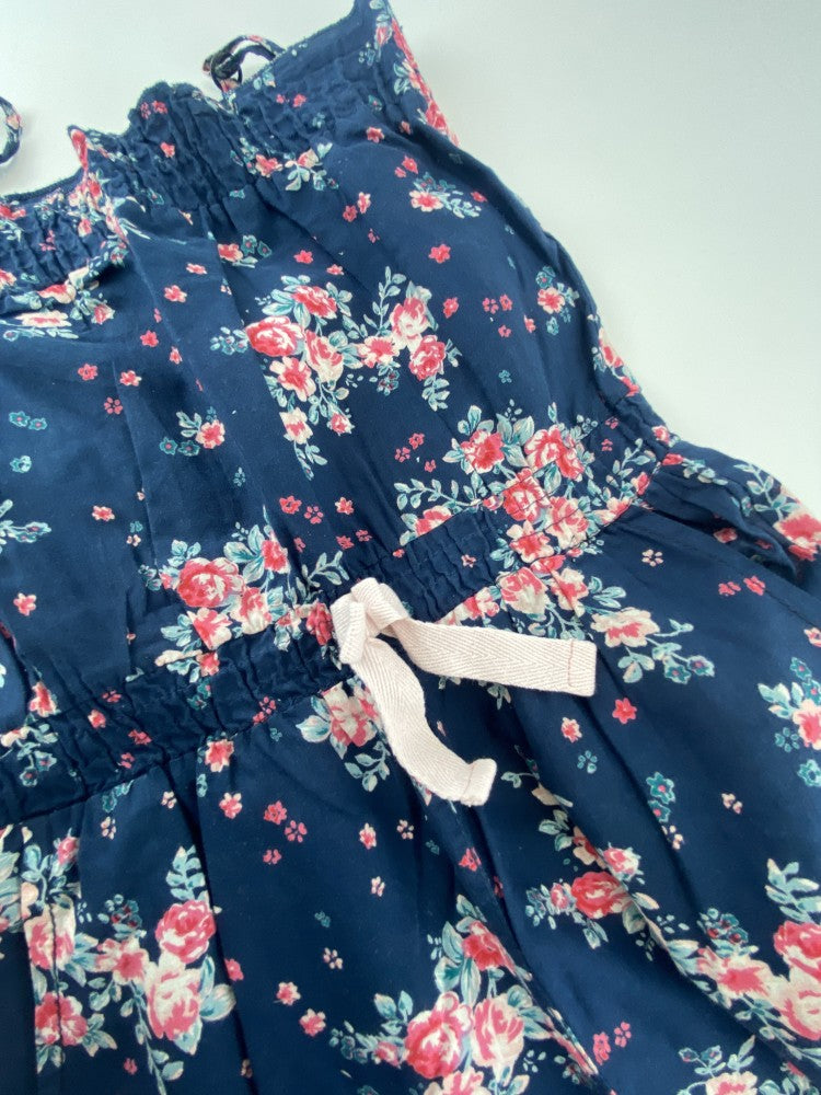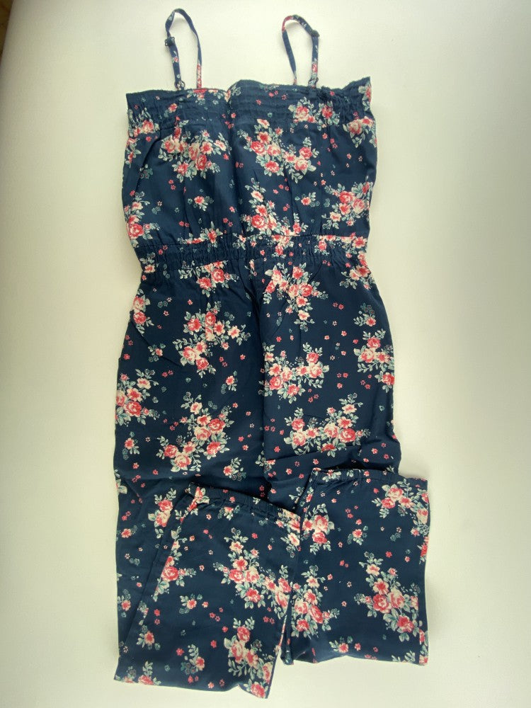 Macacaão de tecido leve estampado com flores. Com alças e elástico na cintura.