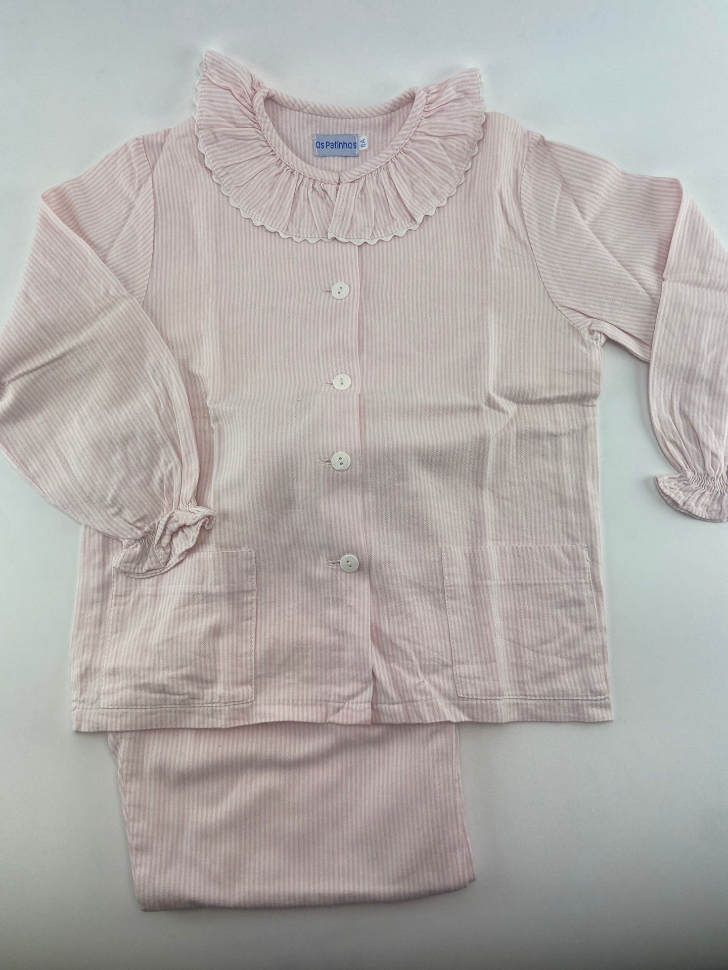 Pijama em vaiela com folho na gola.
