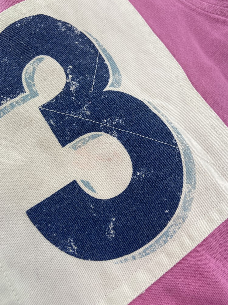 Sinais generalizados de desgaste. Mancha de cor na estampagem de trás.