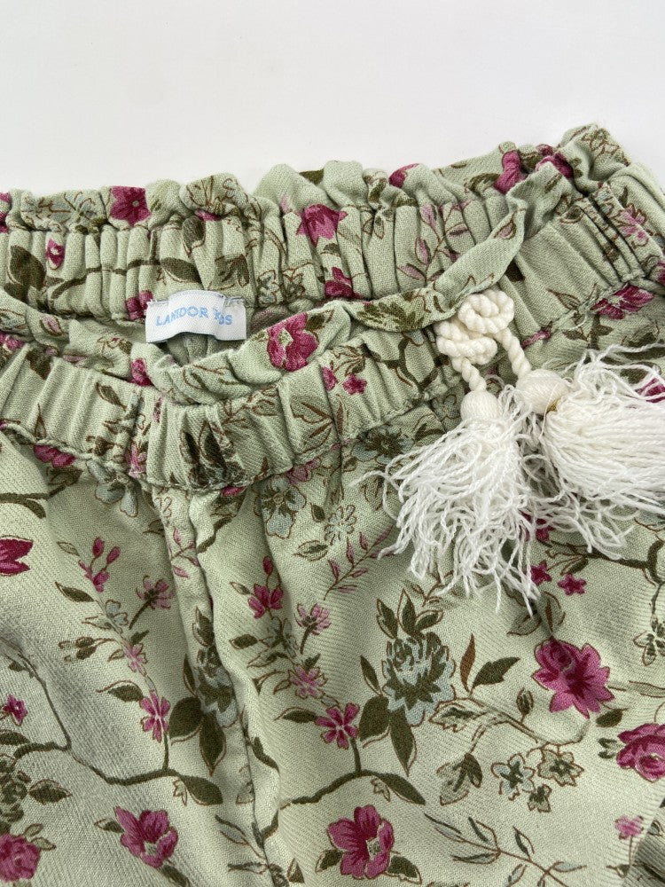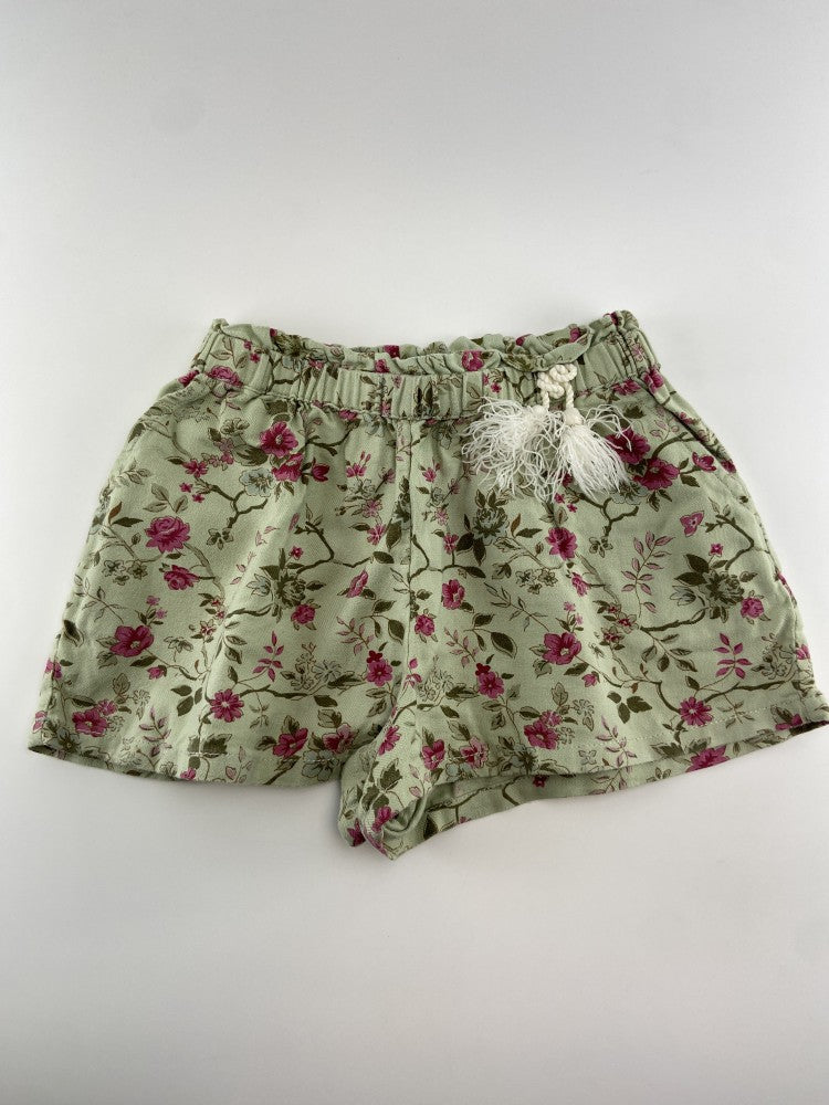 Calções em vaiela com padrão florido com bolsos, com elástico na cintura.