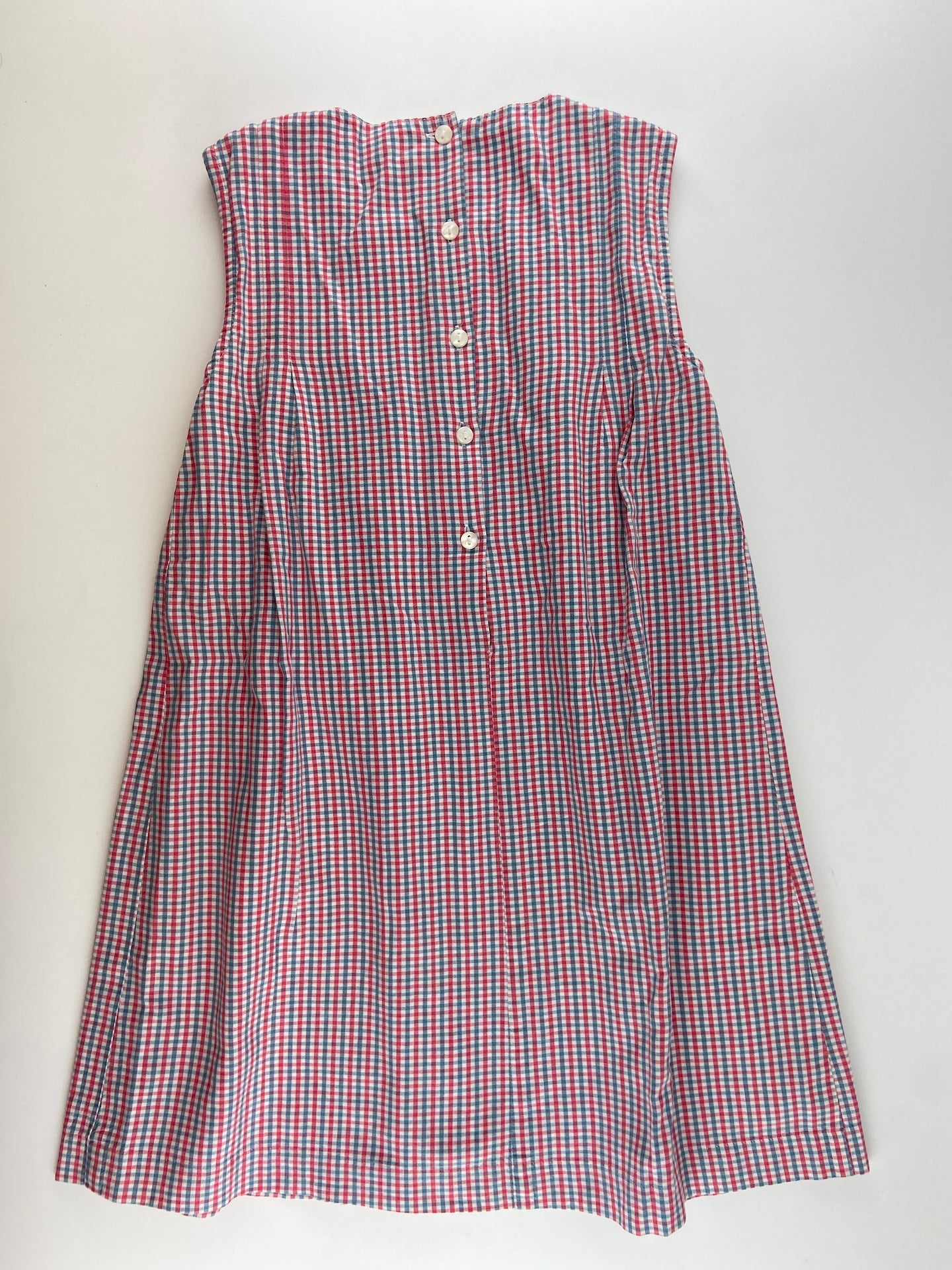 Vestido de manga à cava com forro e com ponto de elástico no peito.