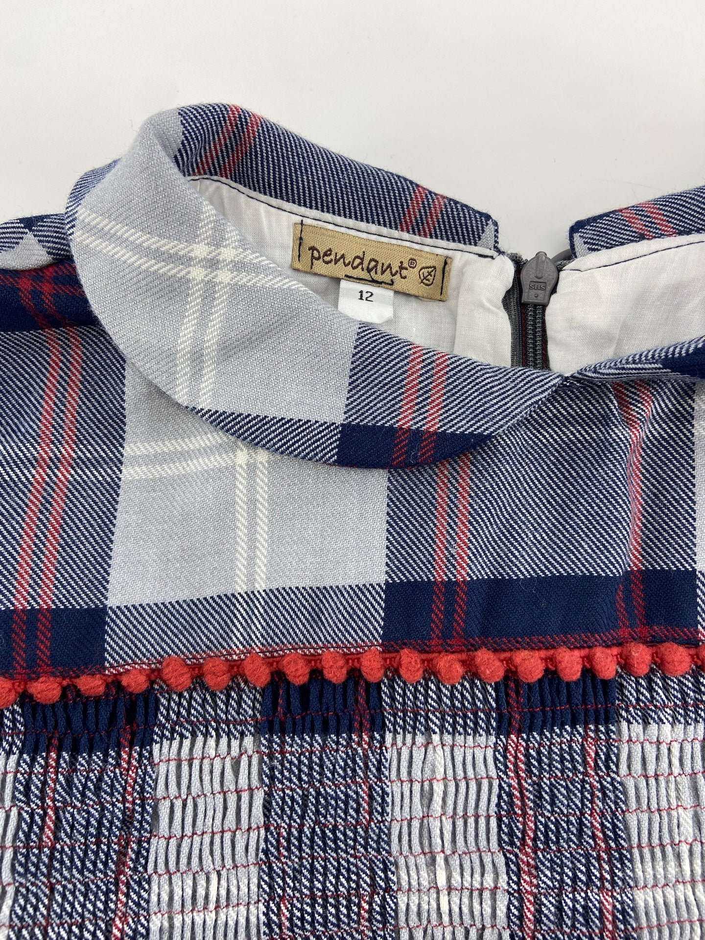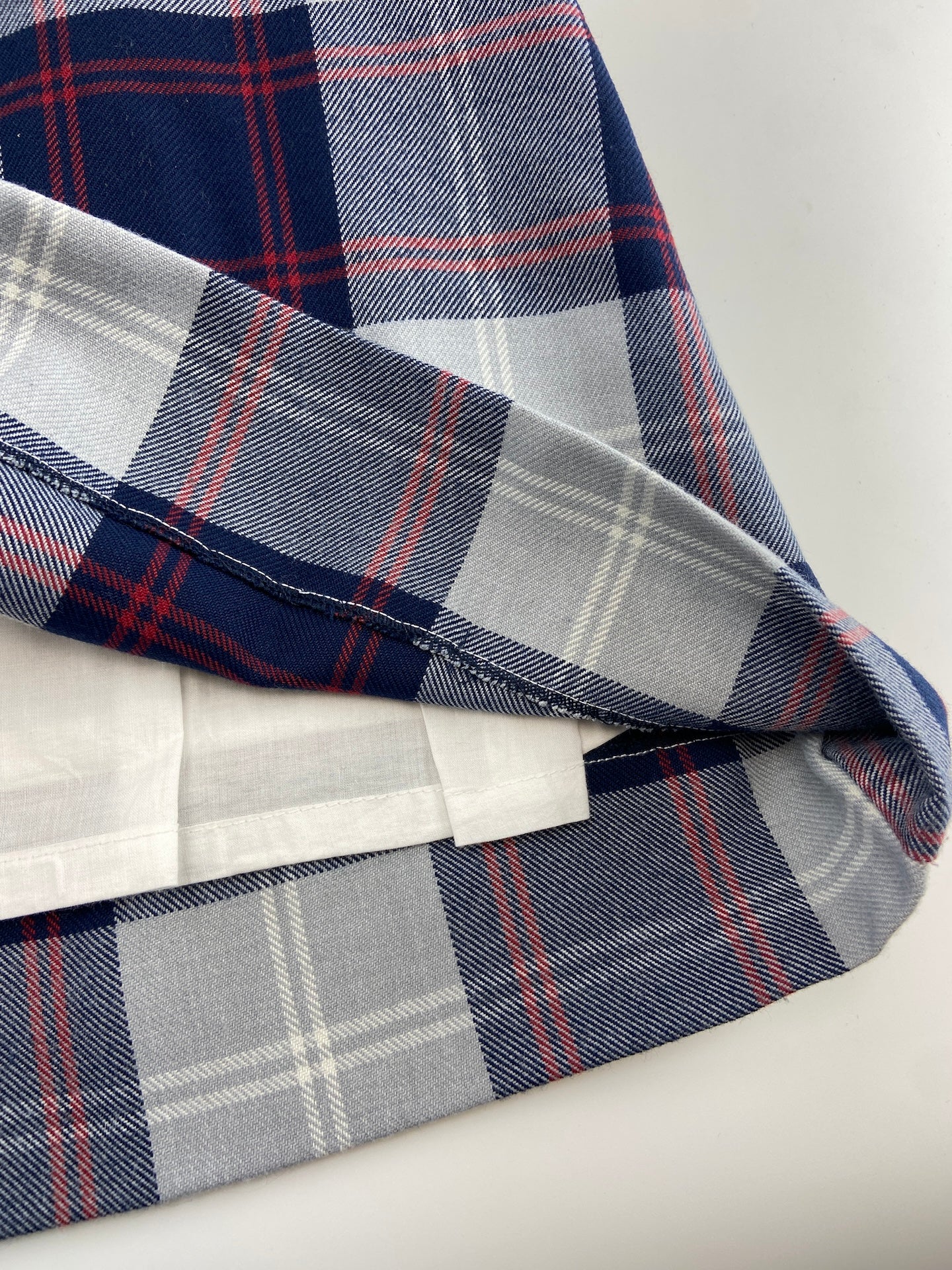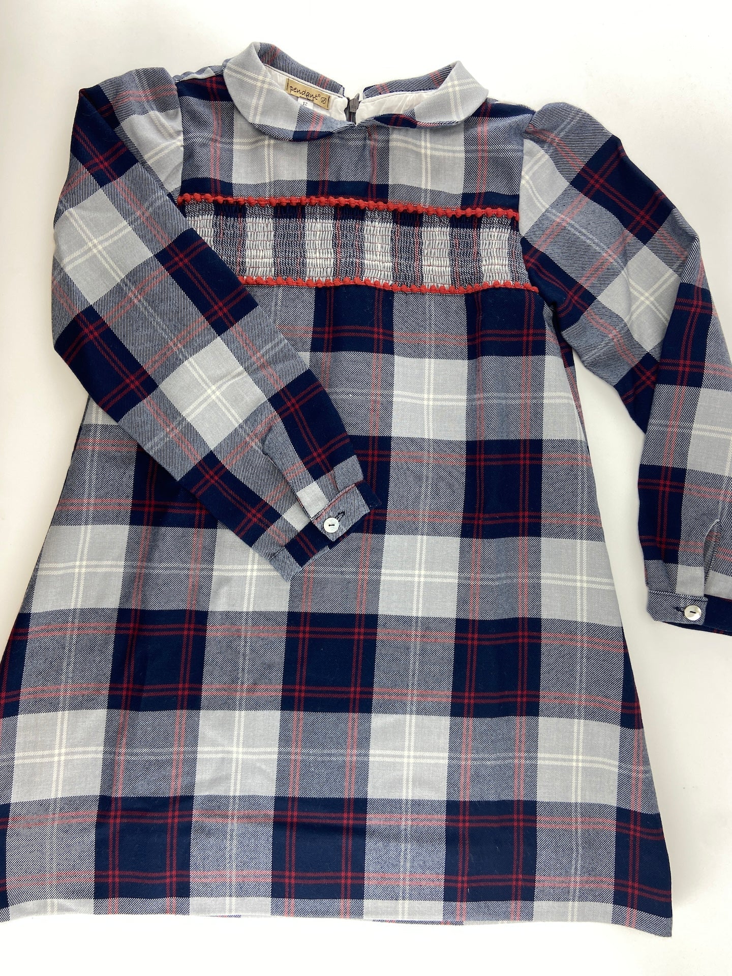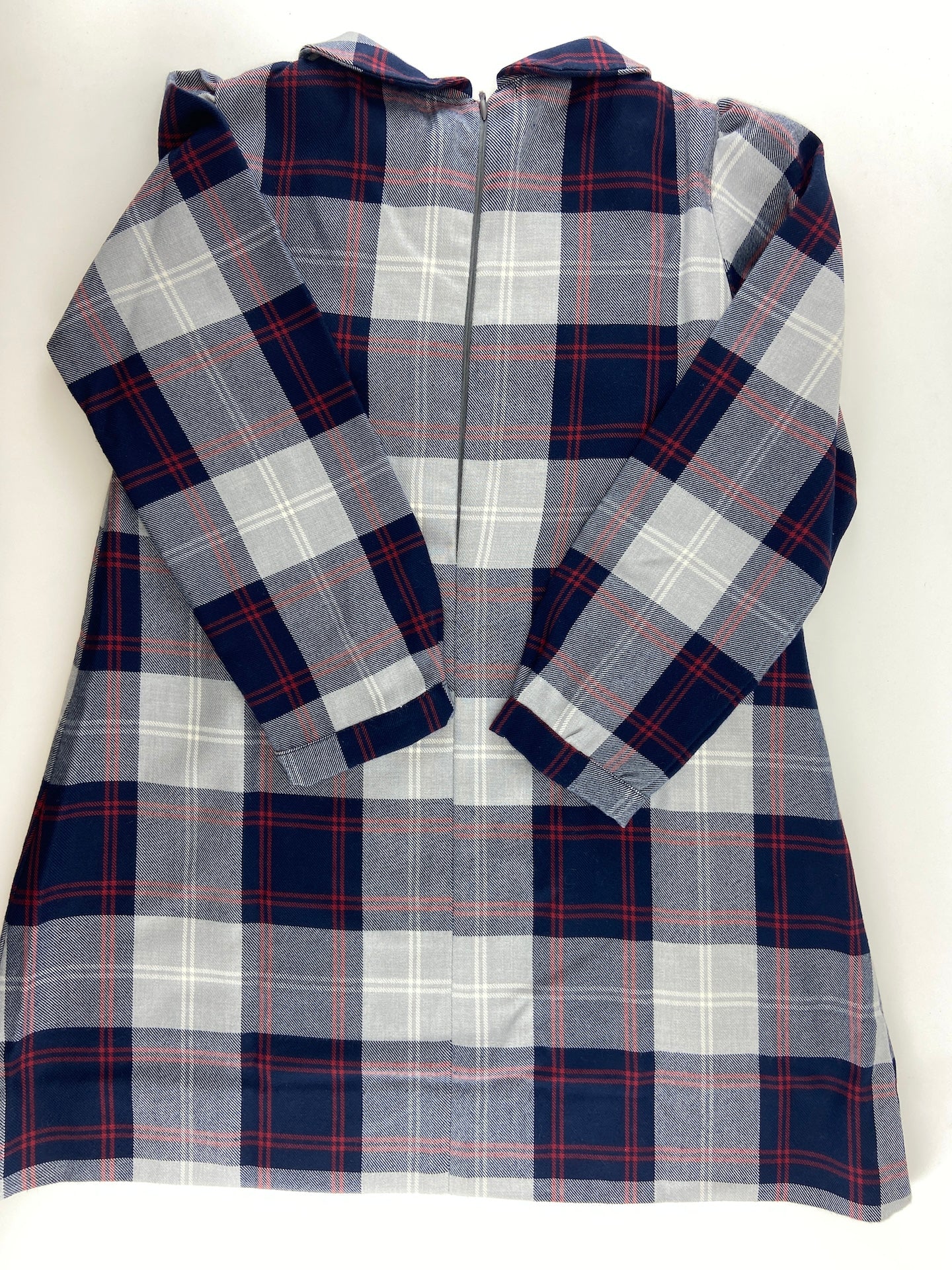 Vestido em vaiela com padrão escocês, com peito em ponto de elástico e com forro.