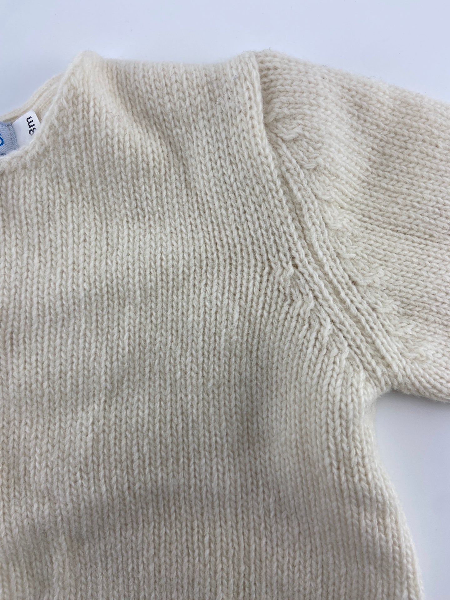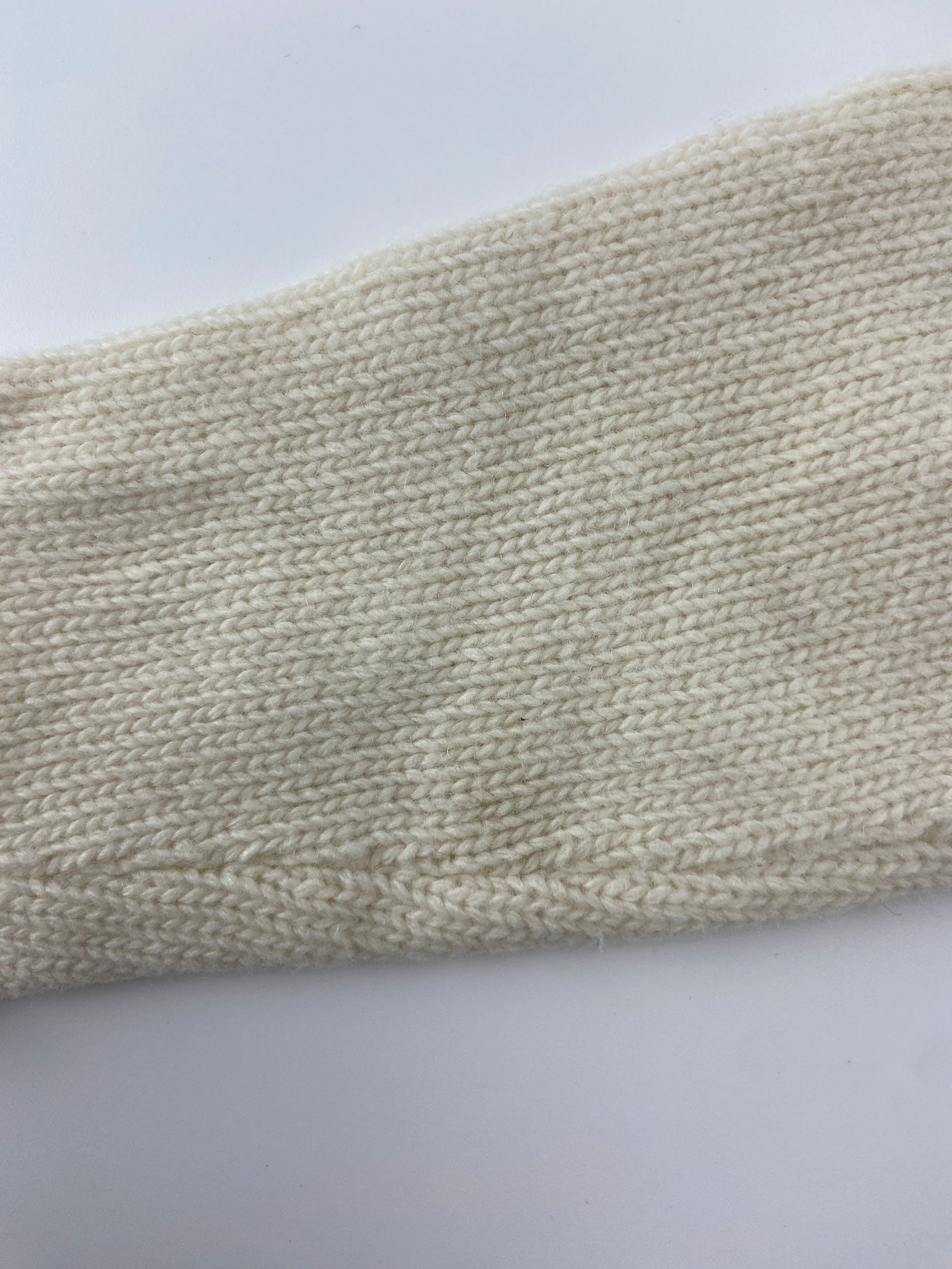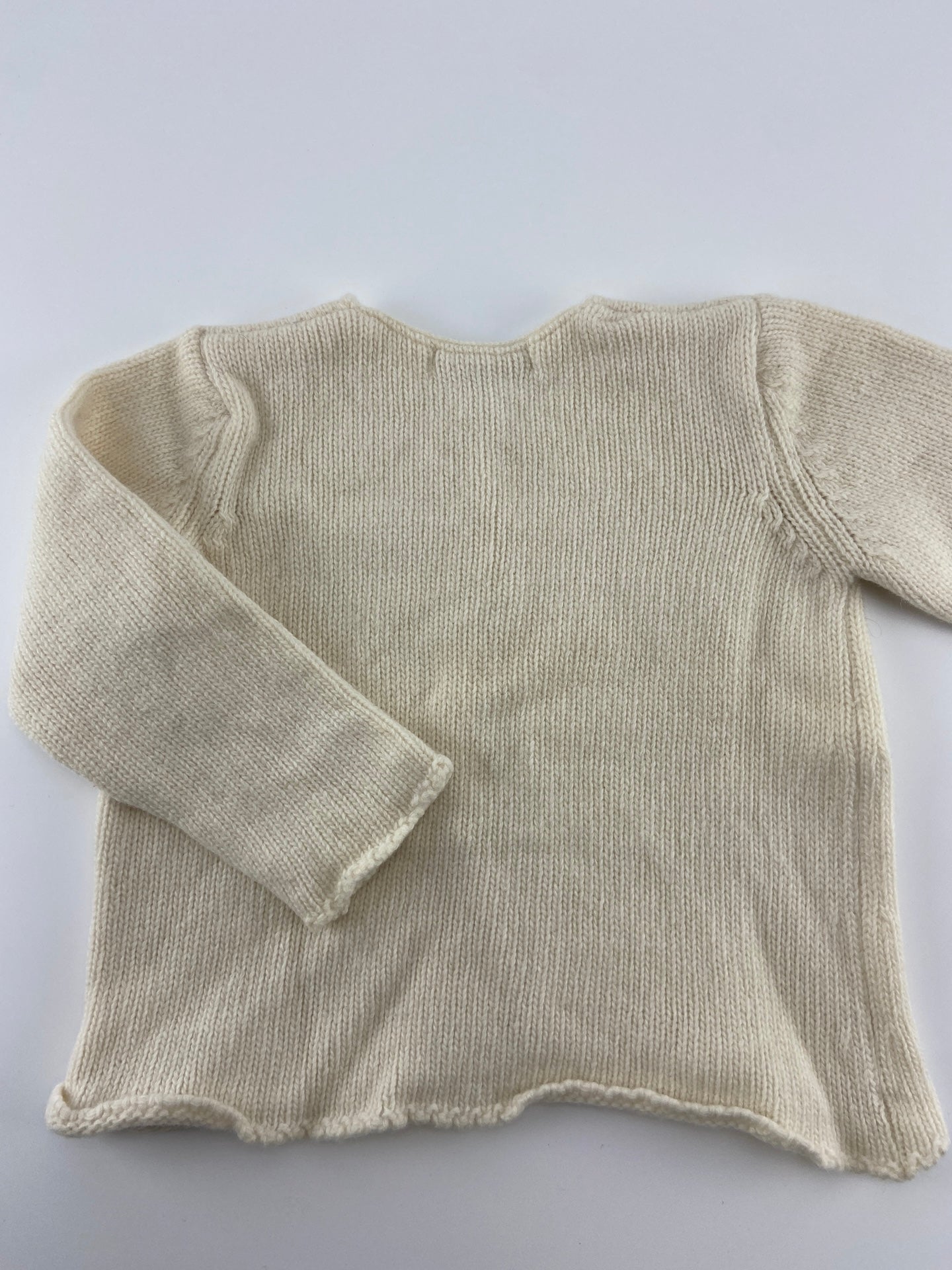 Mancha no interior do braço. Malha um pouco deformada das lavagens.