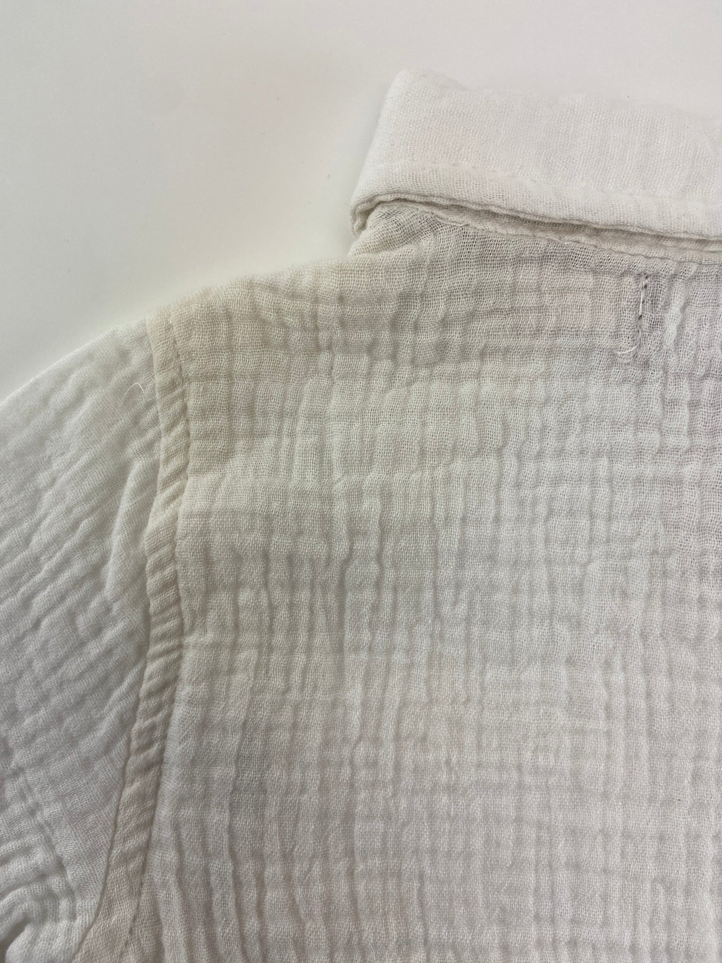Camisa de manga curta em tecido texturado. Com dois bolsos na frente.