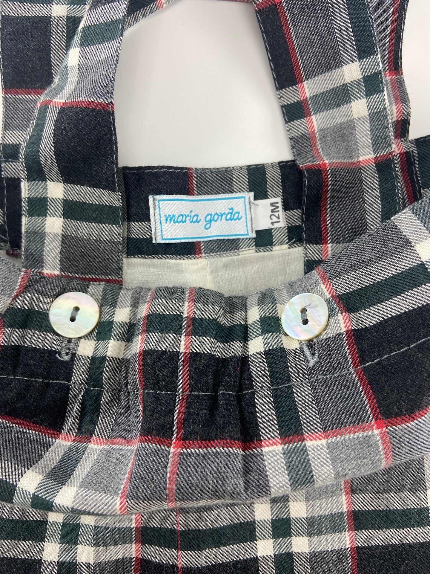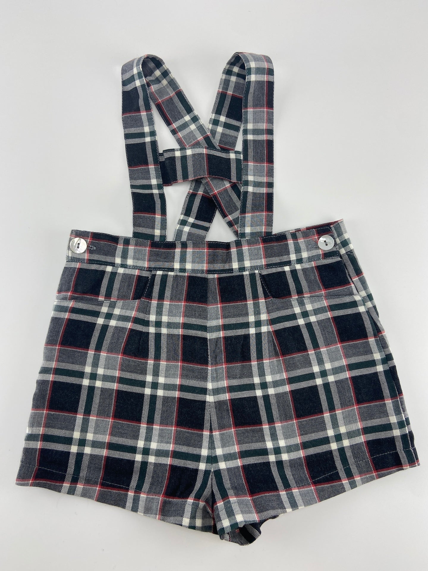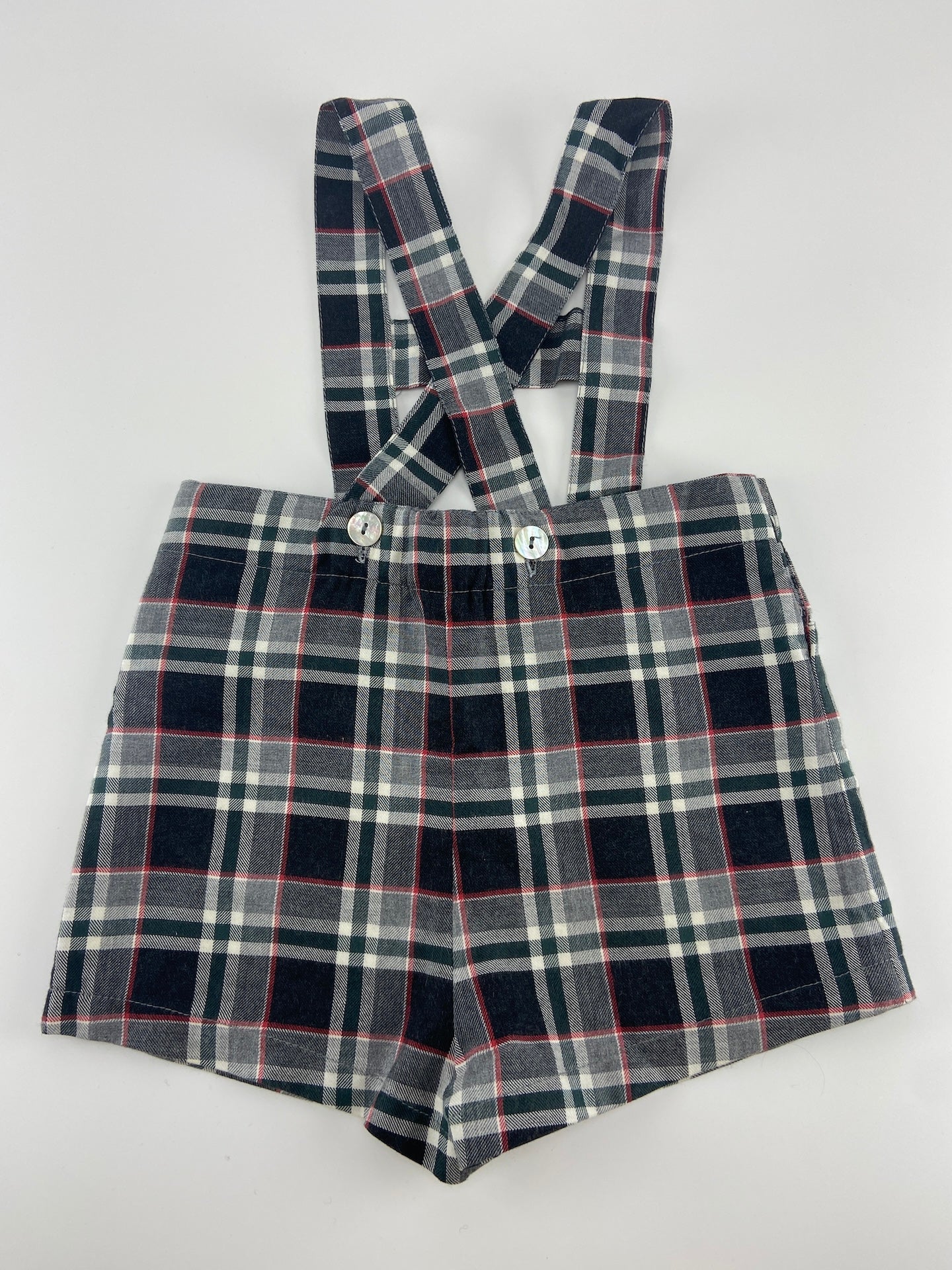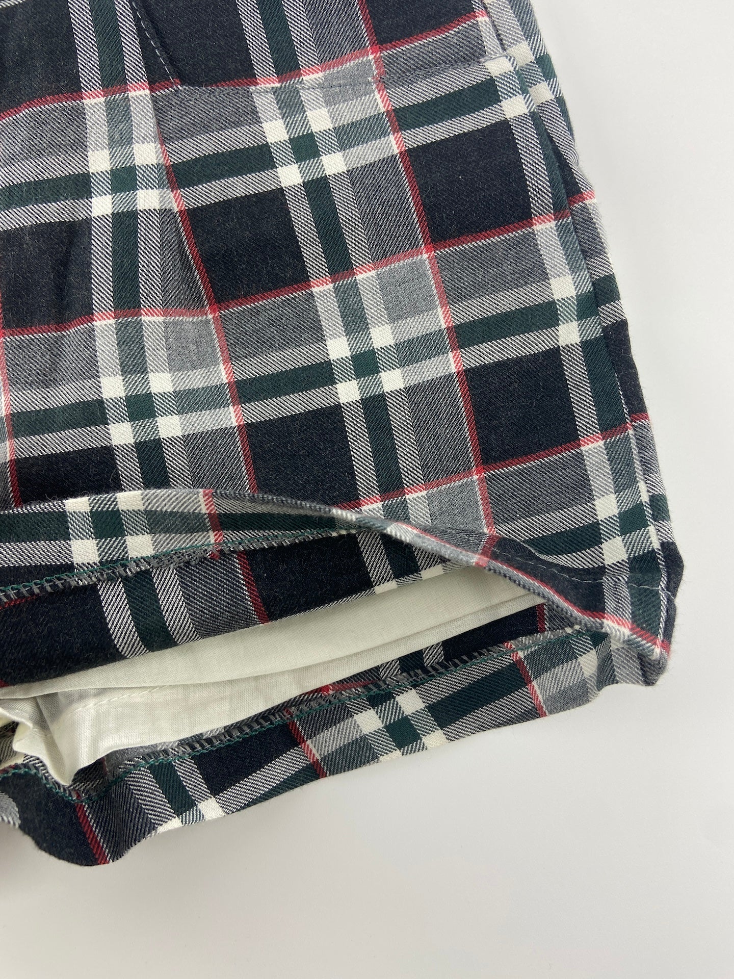 Calções em vaiela com padrão escocês com forro e botões de madrepérola.