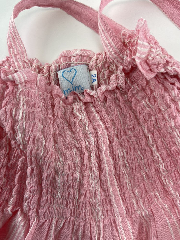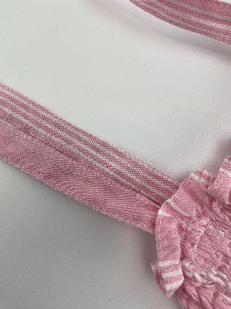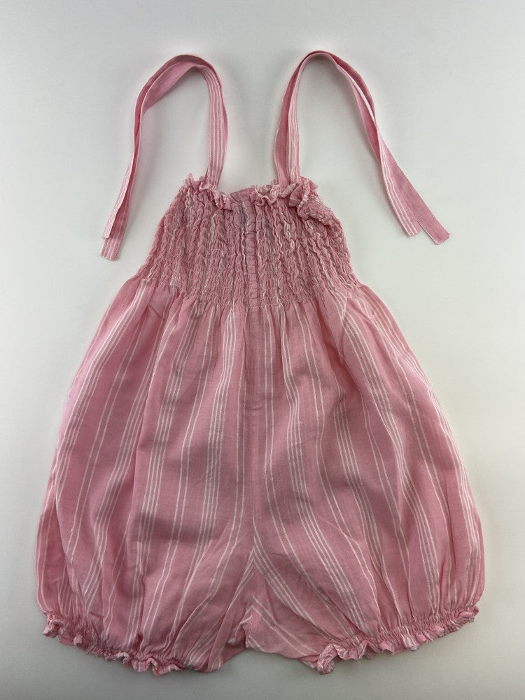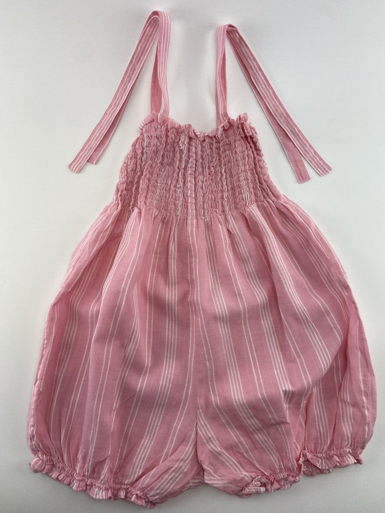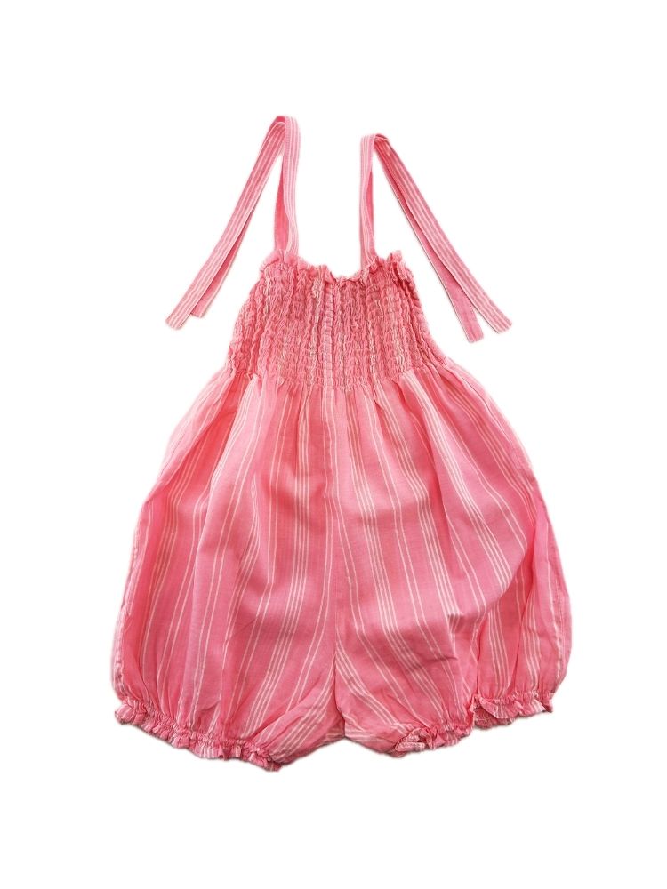 Macacão de alças com ponto de elástico no peito.