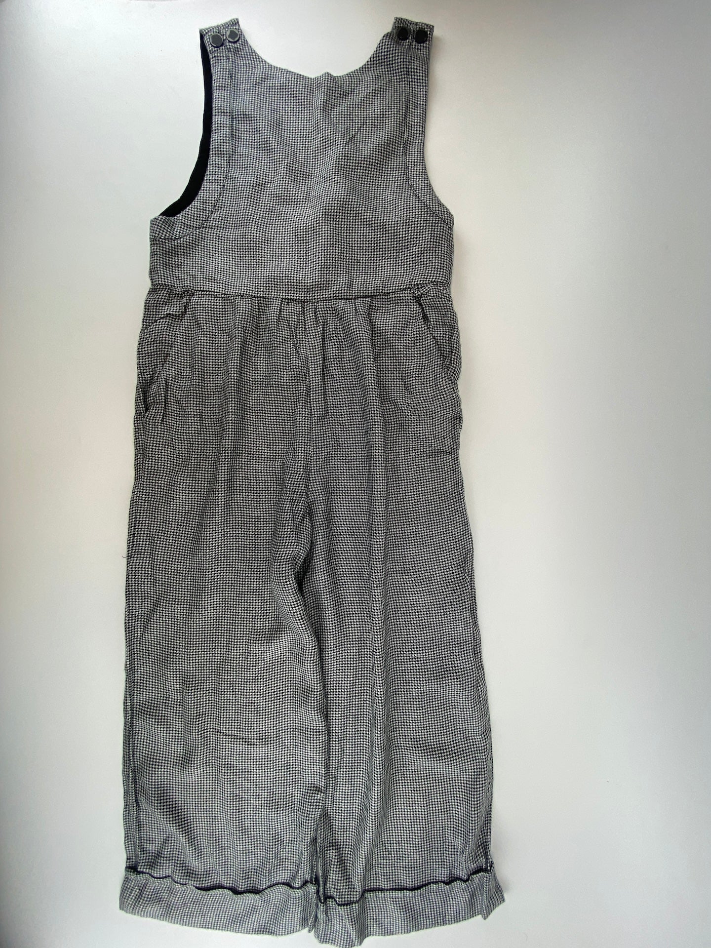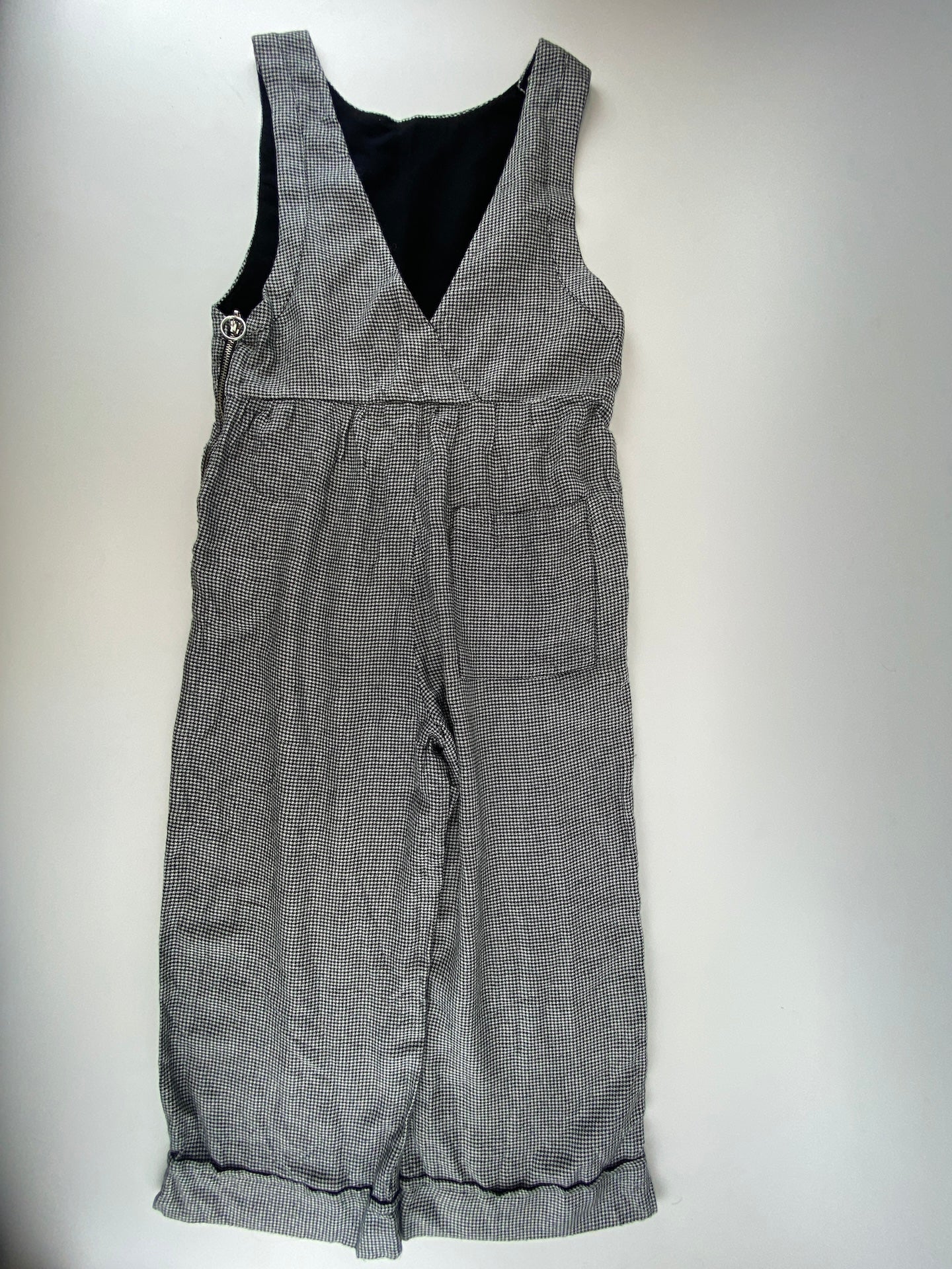 Macacão em vaiela forrado com decote em V nas costas. Molas nos ombros e fecho lateral.