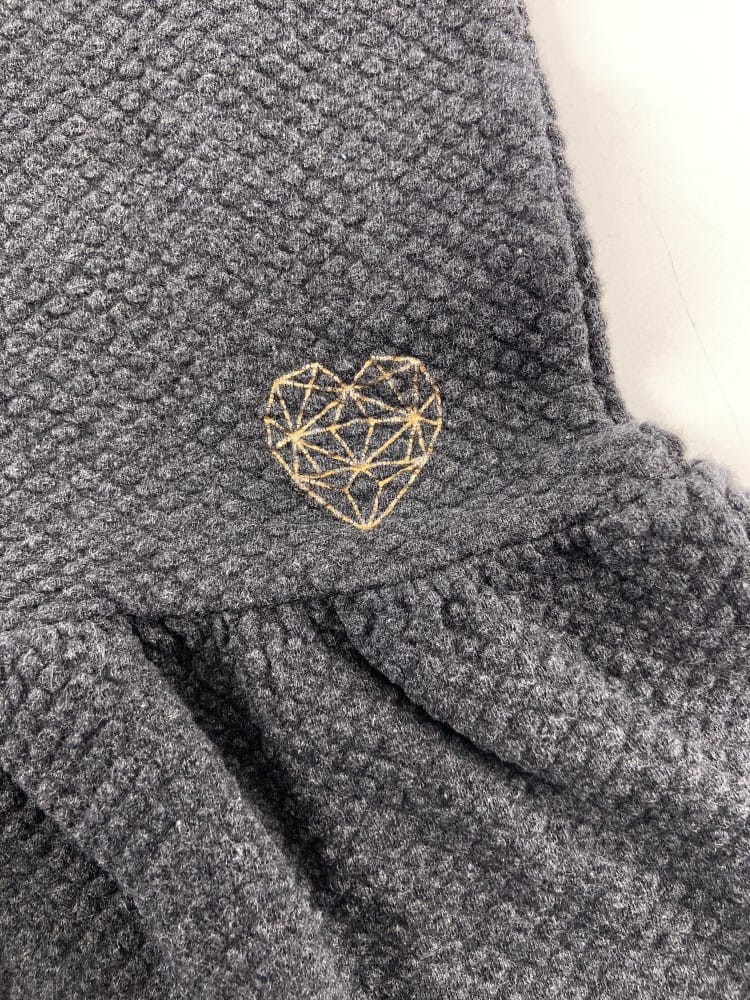 Vestido com textura de favos em malha elástica. Pequeno estampado na frente.