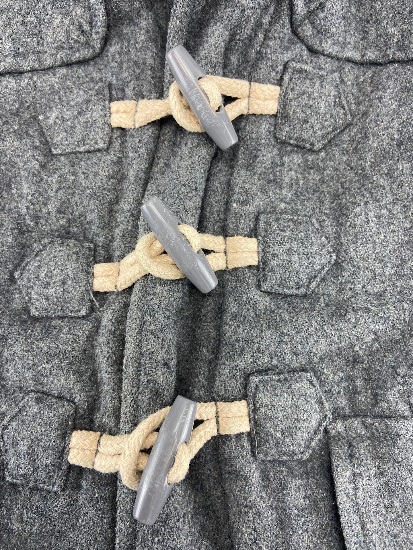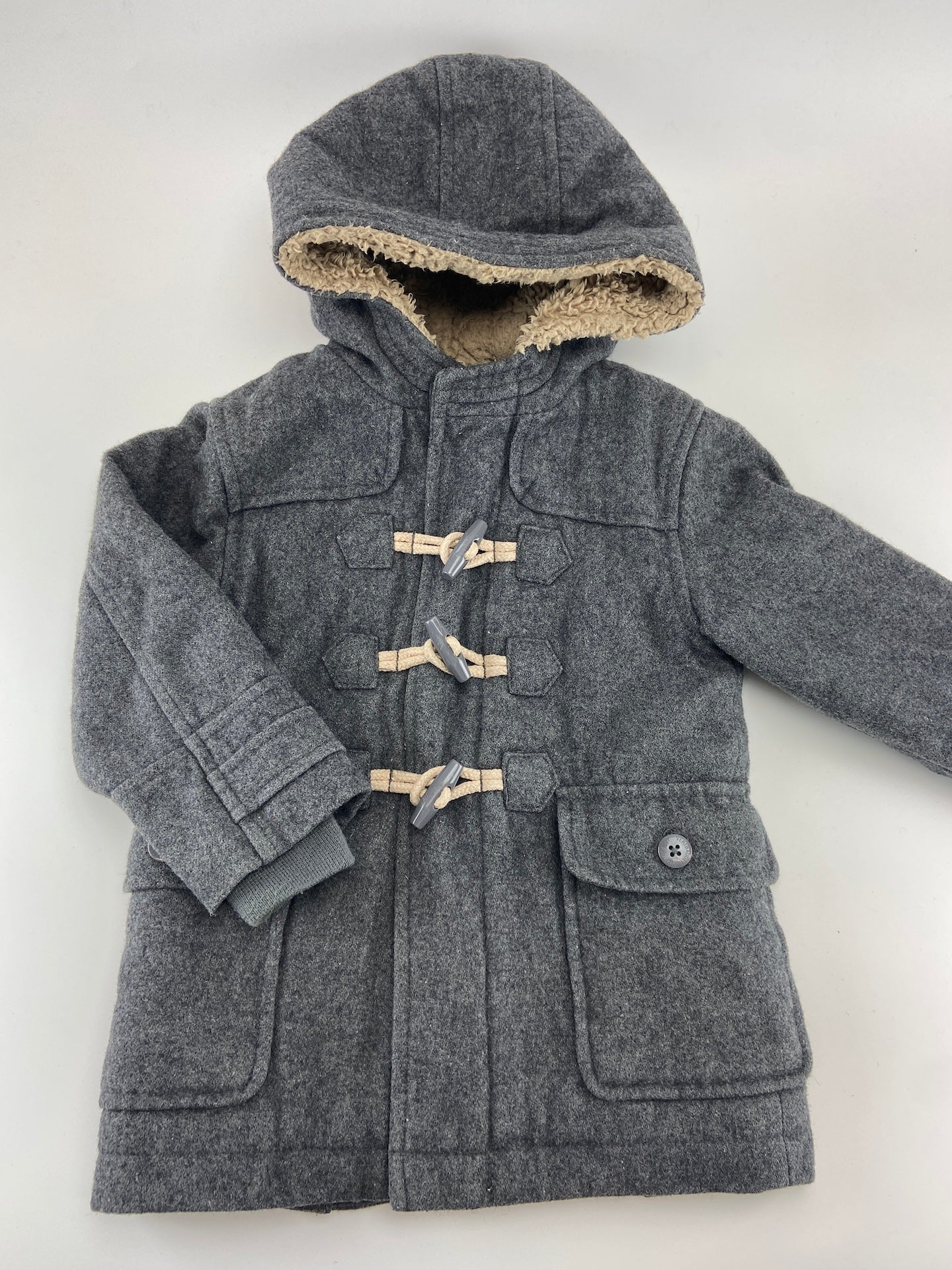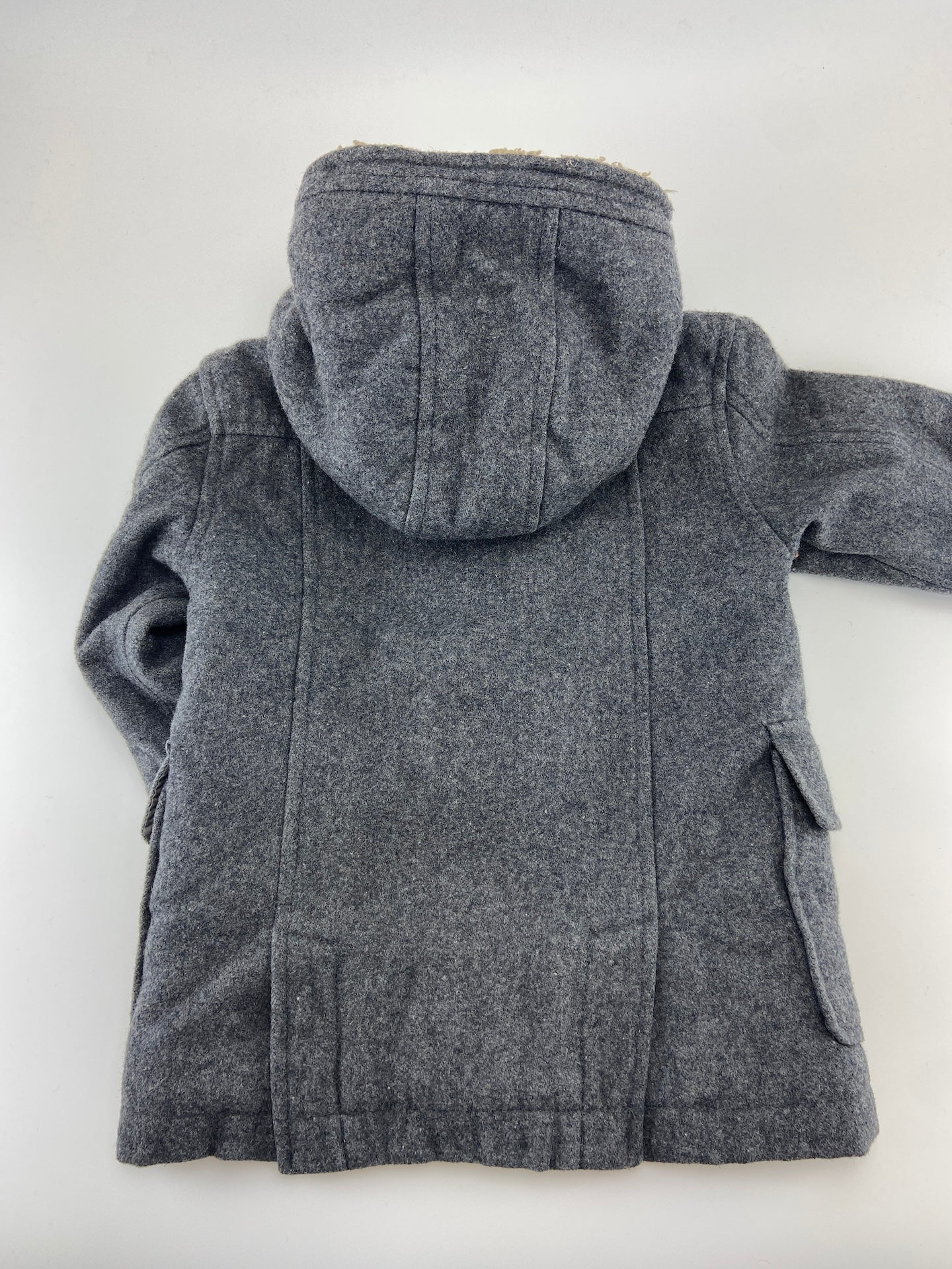 Casaco de abafo de fazenda forrado com pêlo. Com fecho e botões.