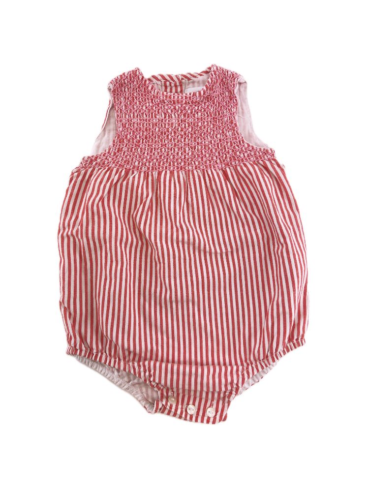 Fofo às riscas com pontos de elástico no peito, com fita de abotoar atrás.