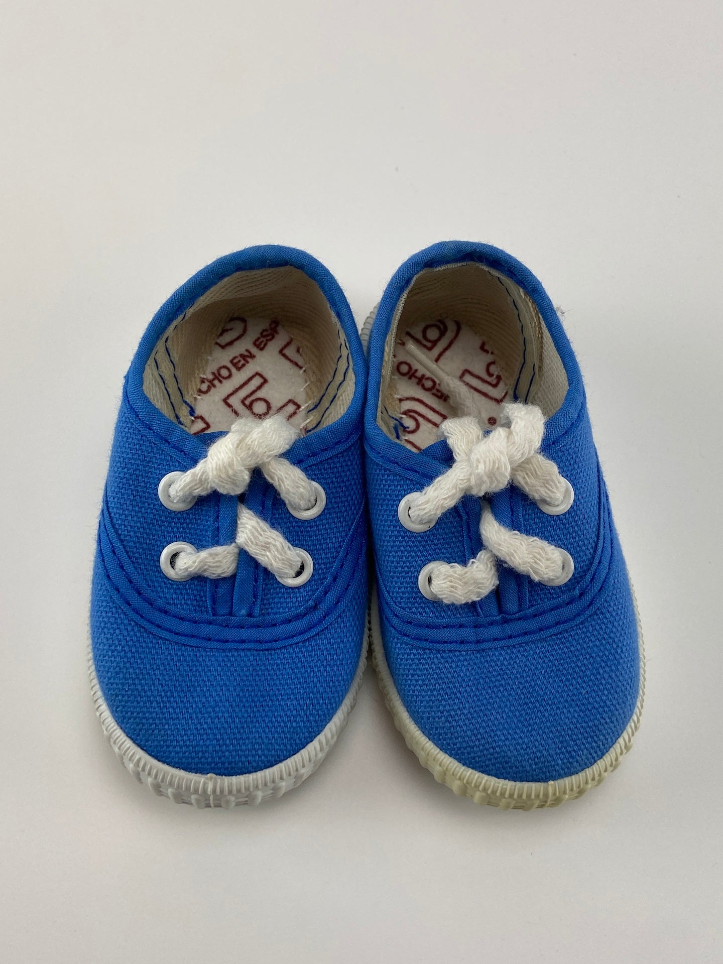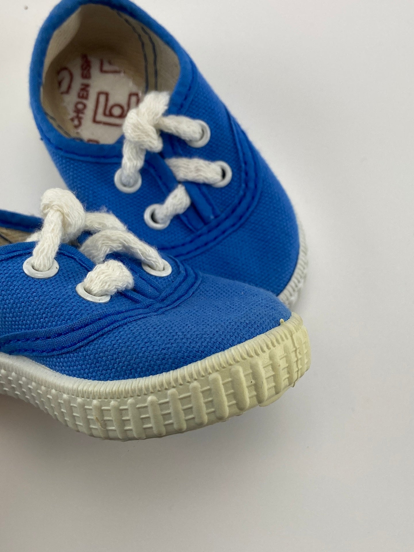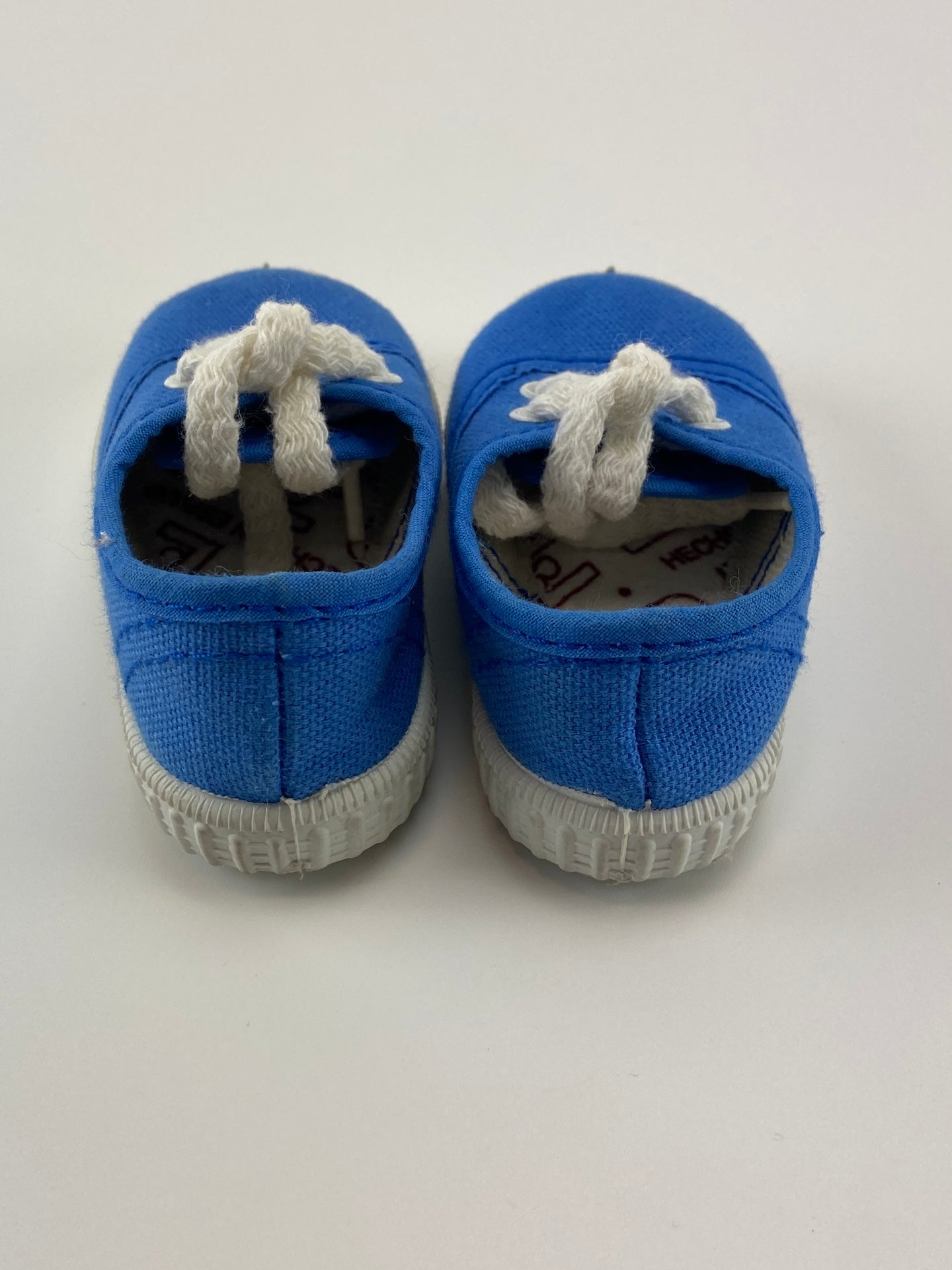 Ténis de lona com sola de borracha e atacdores.