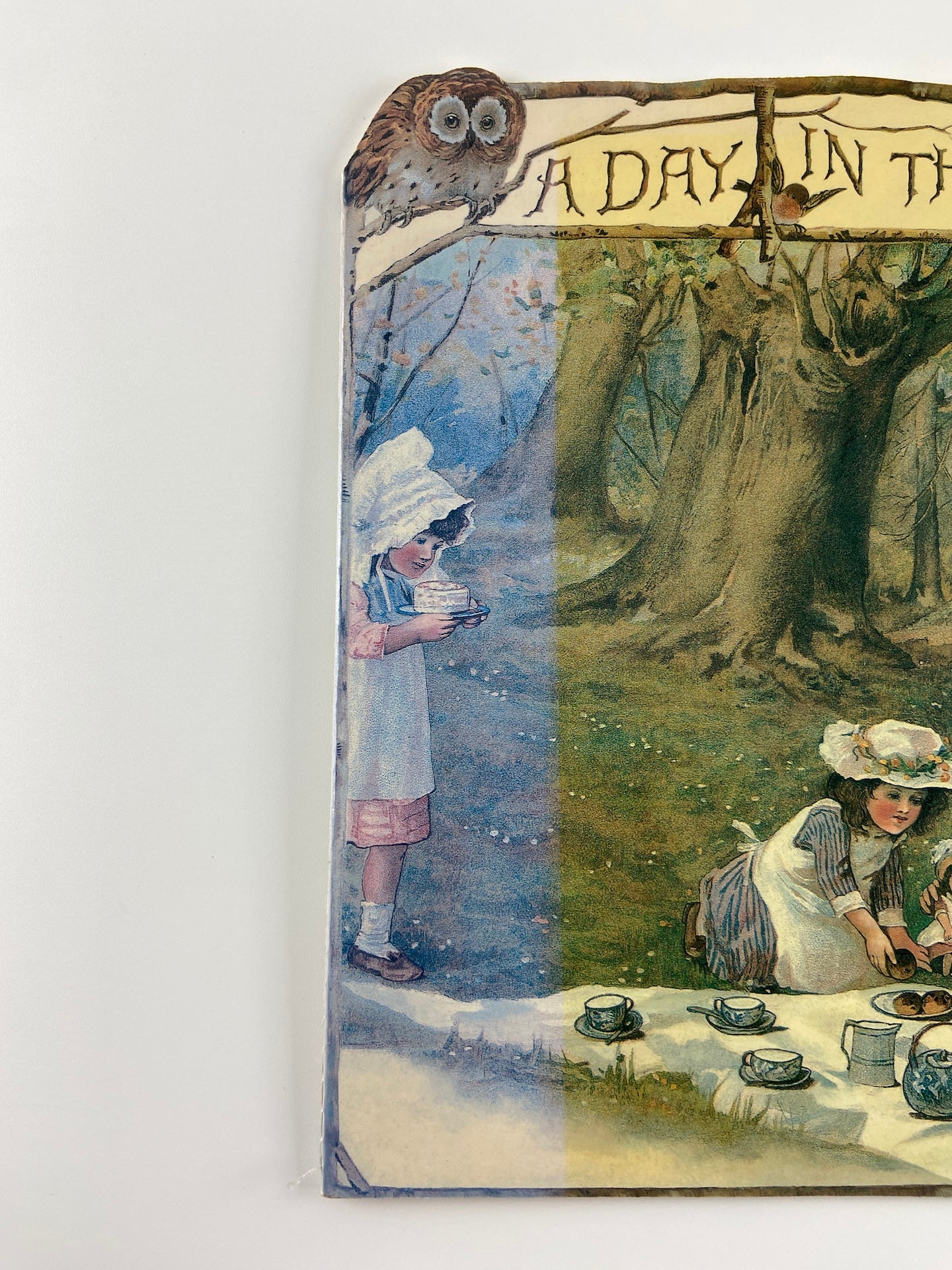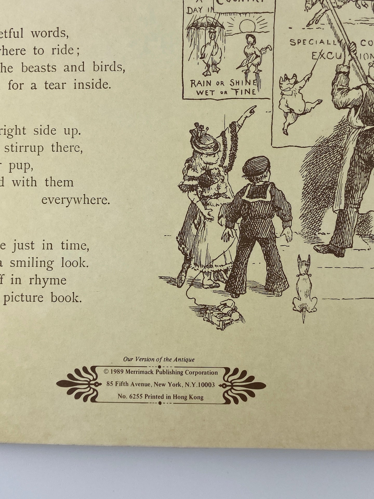 História contada em quadra de um dia passado na quinta com ilustrações antigas. Em inglês.