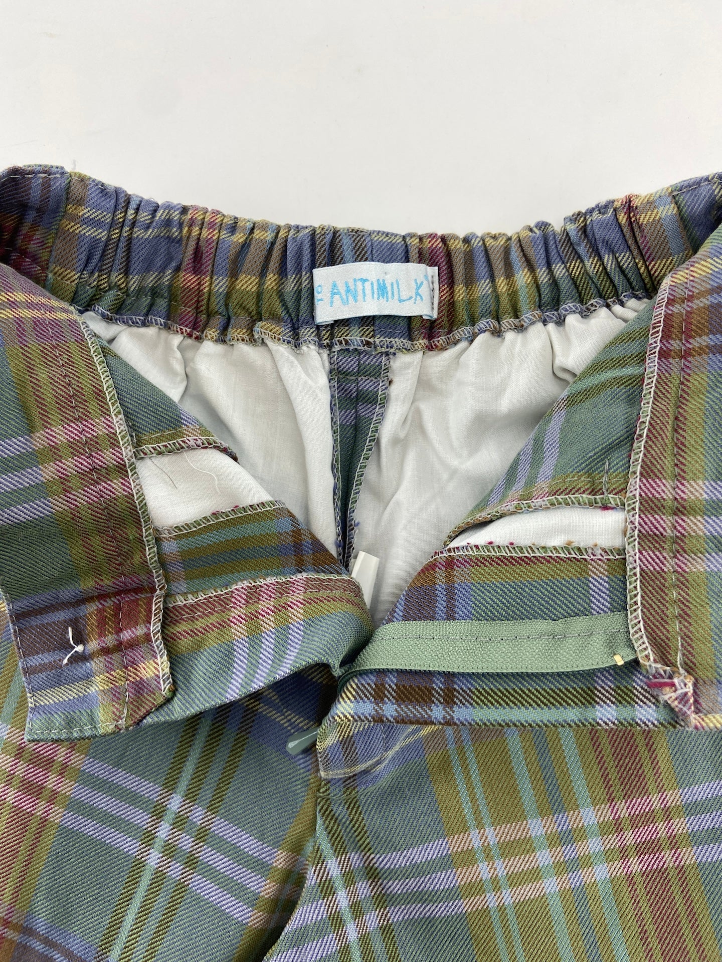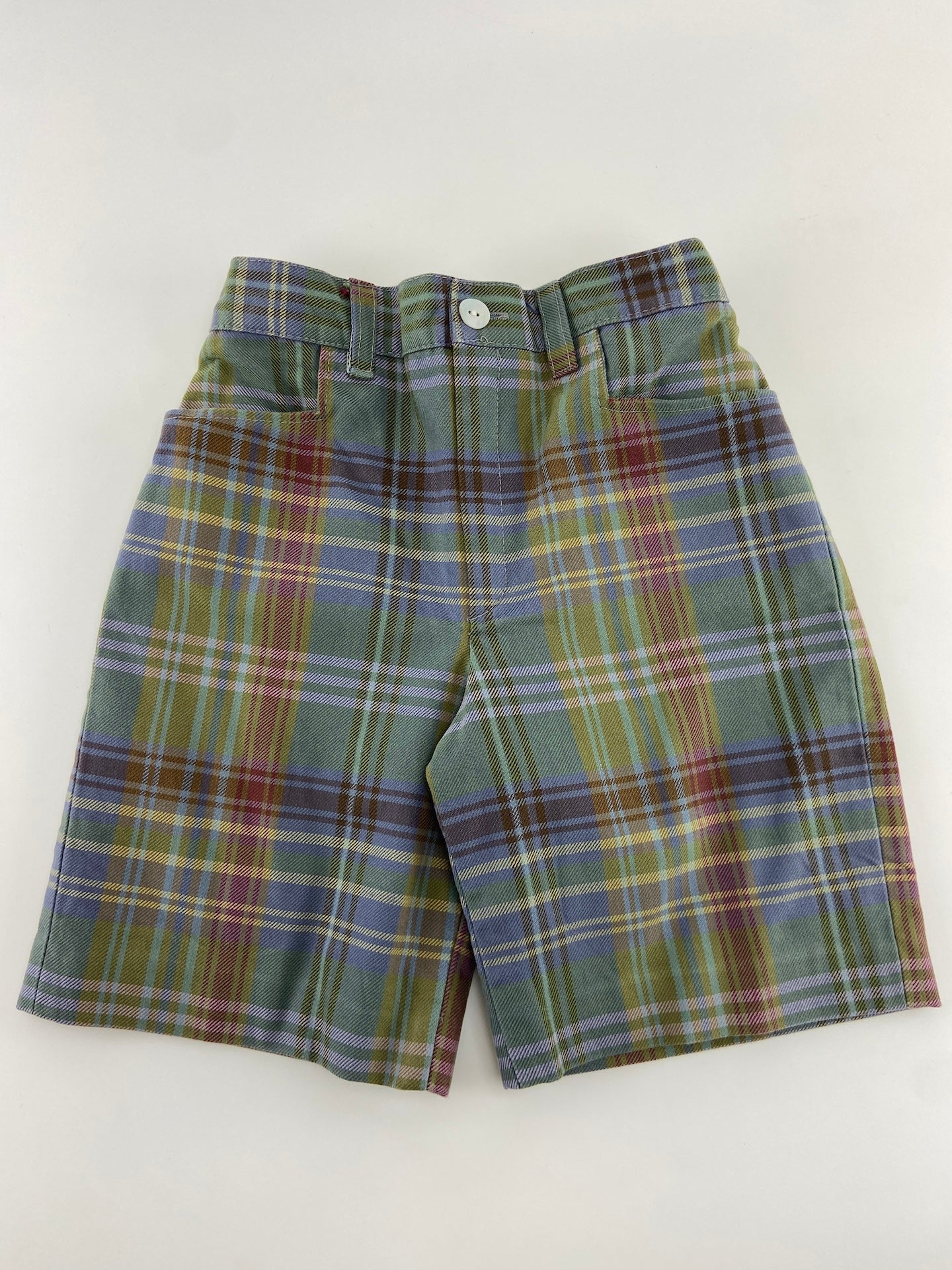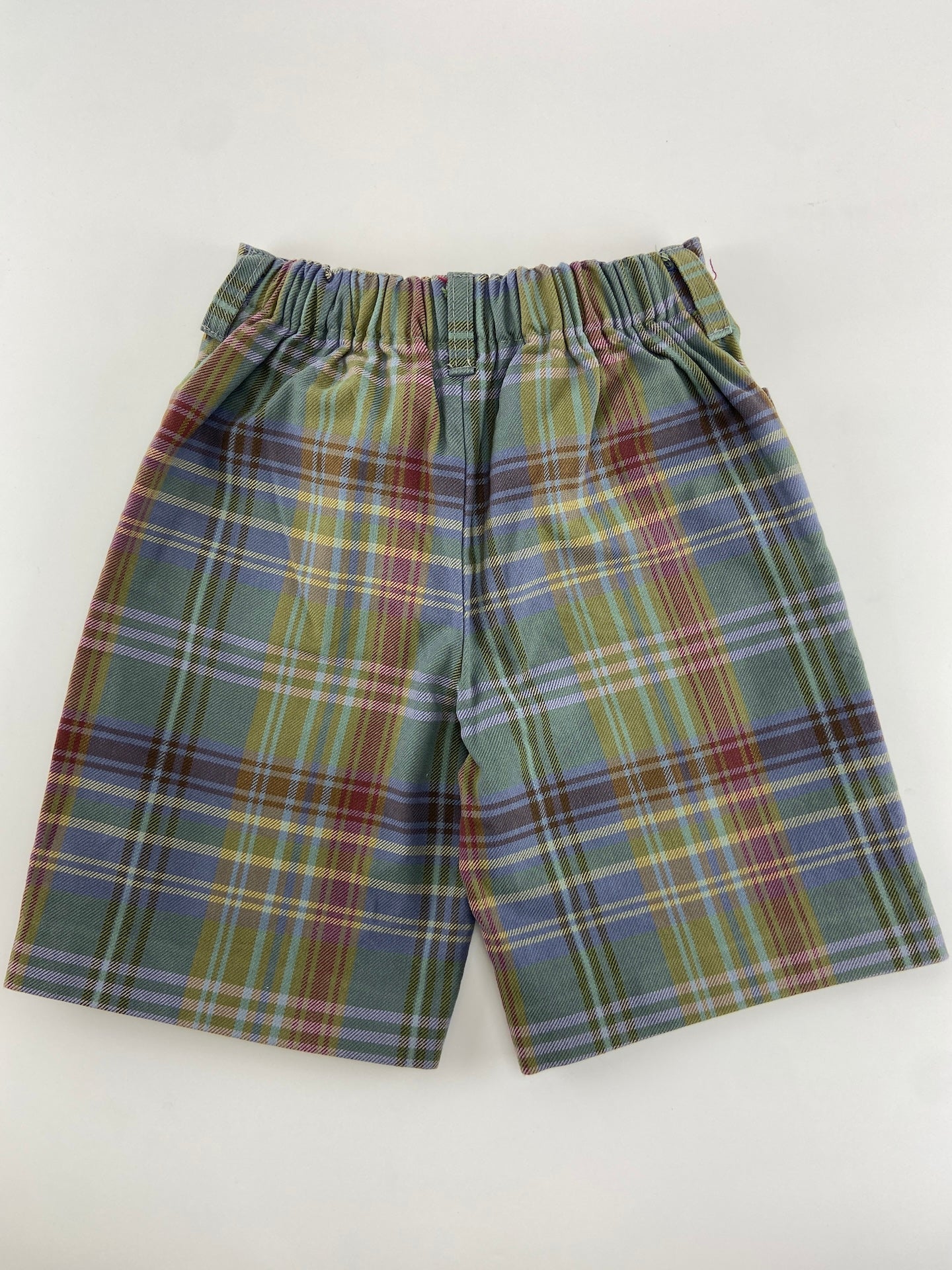 Calções com padrão escocês. Com bolsos na frente e elástico em meia cintura.