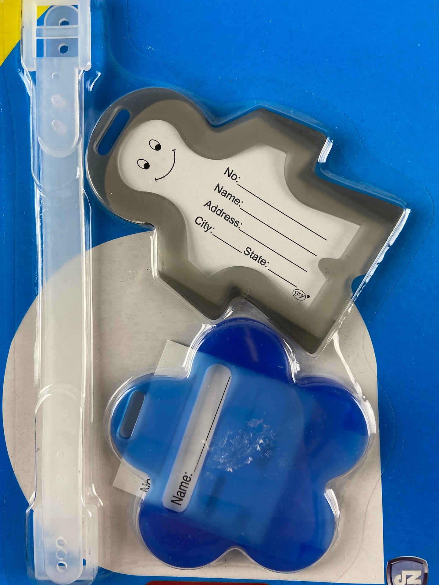 Conjunto de 2 etiquetas para pôr o nome na mochila. Este é um artigo para doação. Está disponível para quem lhe quiser dar uso.